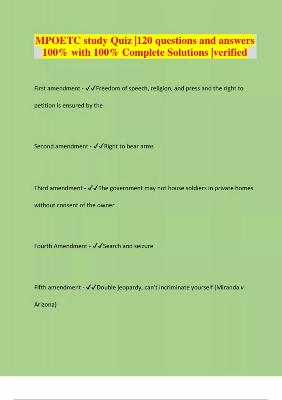 MPOETC study Quiz |120 questions and answers 100% with 100% Complete Solutions |verified