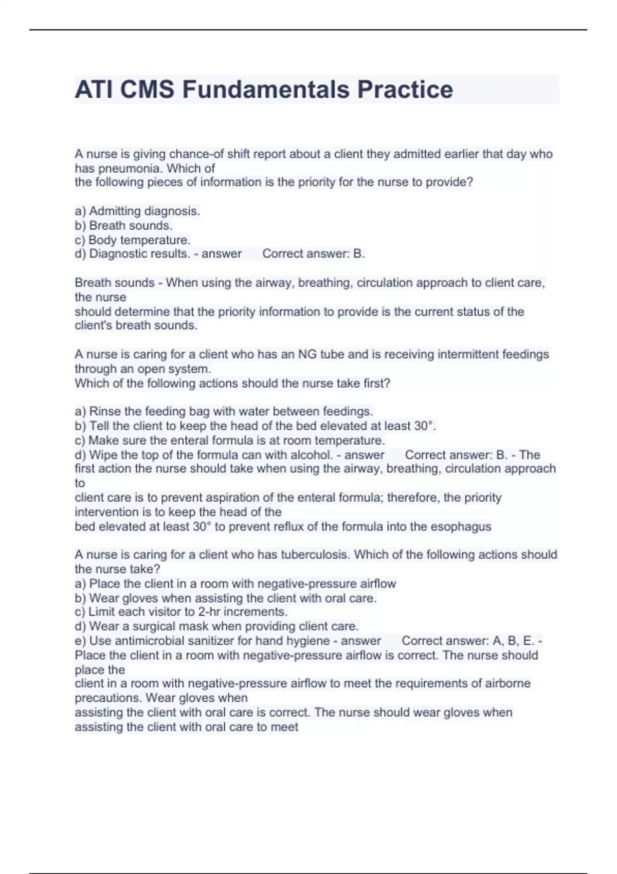 ATI CMS Fundamentals Practice Questions and Answers 100% Accurate