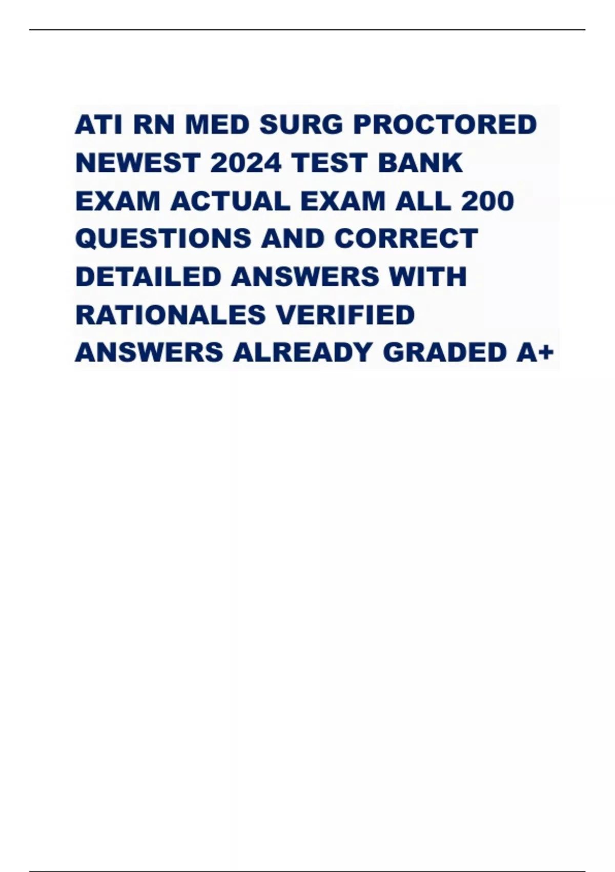 ATI RN MED SURG PROCTORED NEWEST 2024 TEST BANK EXAM ACTUAL EXAM ALL 200 QUESTIONS AND CORRECT DETAILED ANSWERS WITH RATIONALES VERIFIED ANSWERS ALREADY GRADED A+
