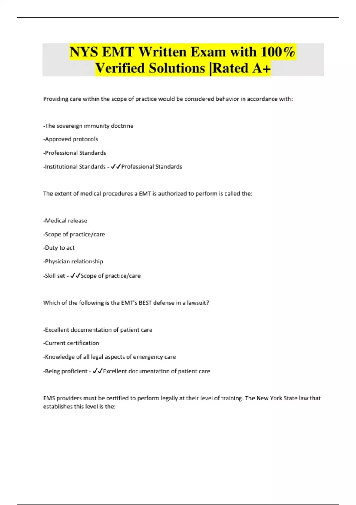 NYS EMT Written Exam with 100% Verified Solutions |Rated A+