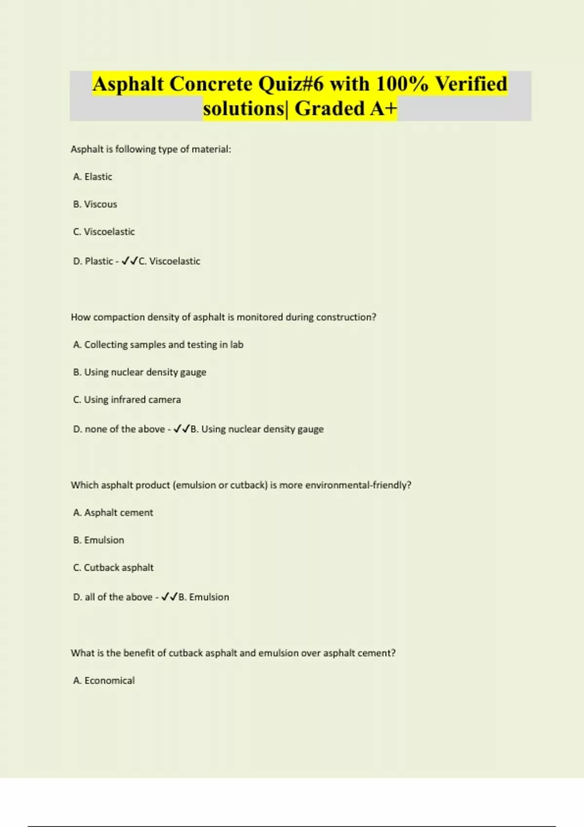 Asphalt Concrete Quiz#6 with 100% Verified solutions| Graded A+