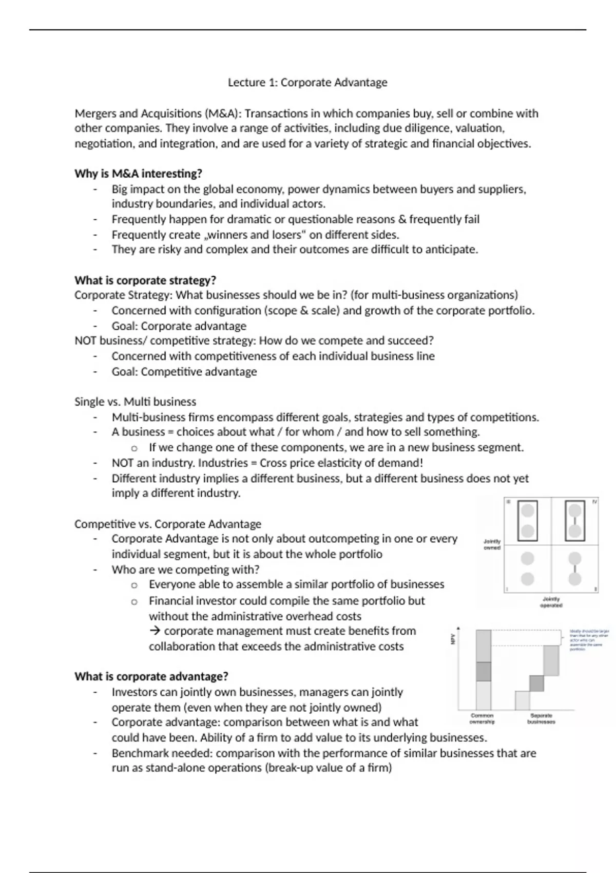 - Corporate Advantage is not only about outcompeting in one or every