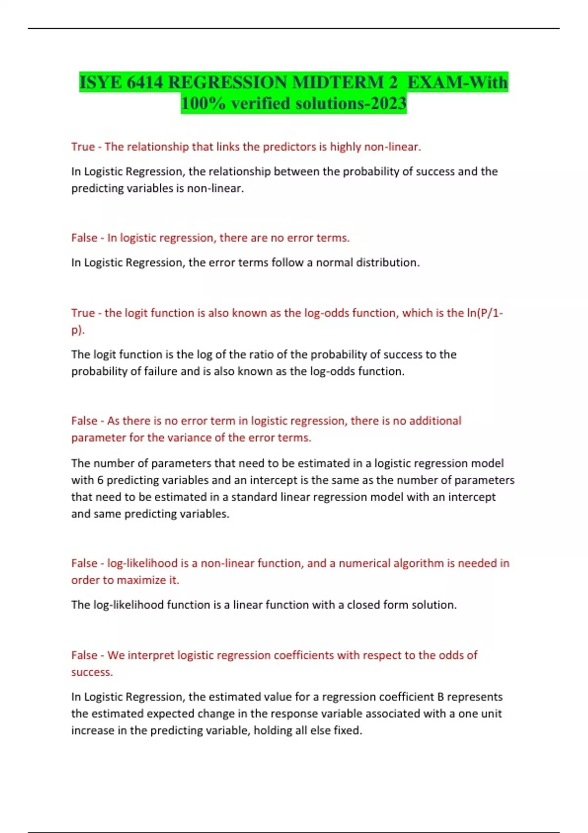 ISYE 6414 REGRESSION MIDTERM 2 EXAM-With 100% verified solutions-2023