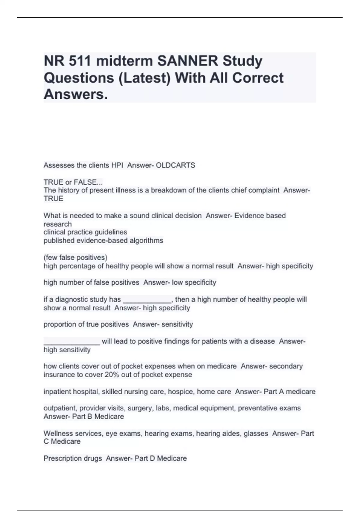 NR 511 midterm SANNER Study Questions (Latest) With All Correct Answers.