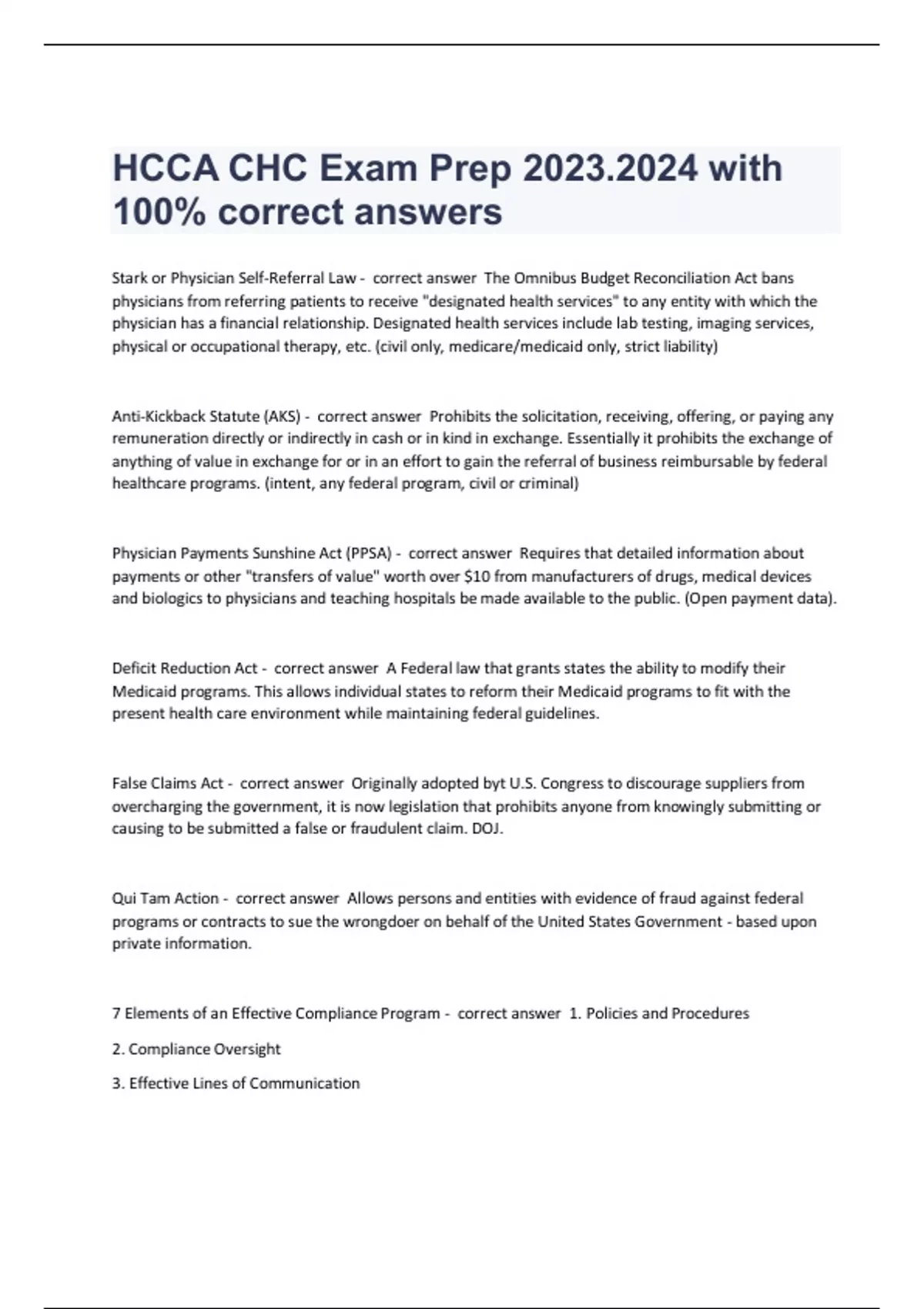 HCCA CHC Exam Prep 2024 with 100% correct answers