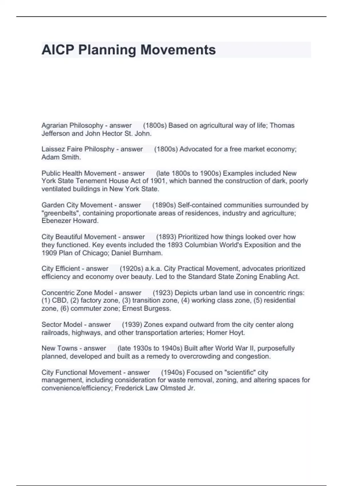 Garden City Movement - answer (1890s) Self-contained communities surrounded by