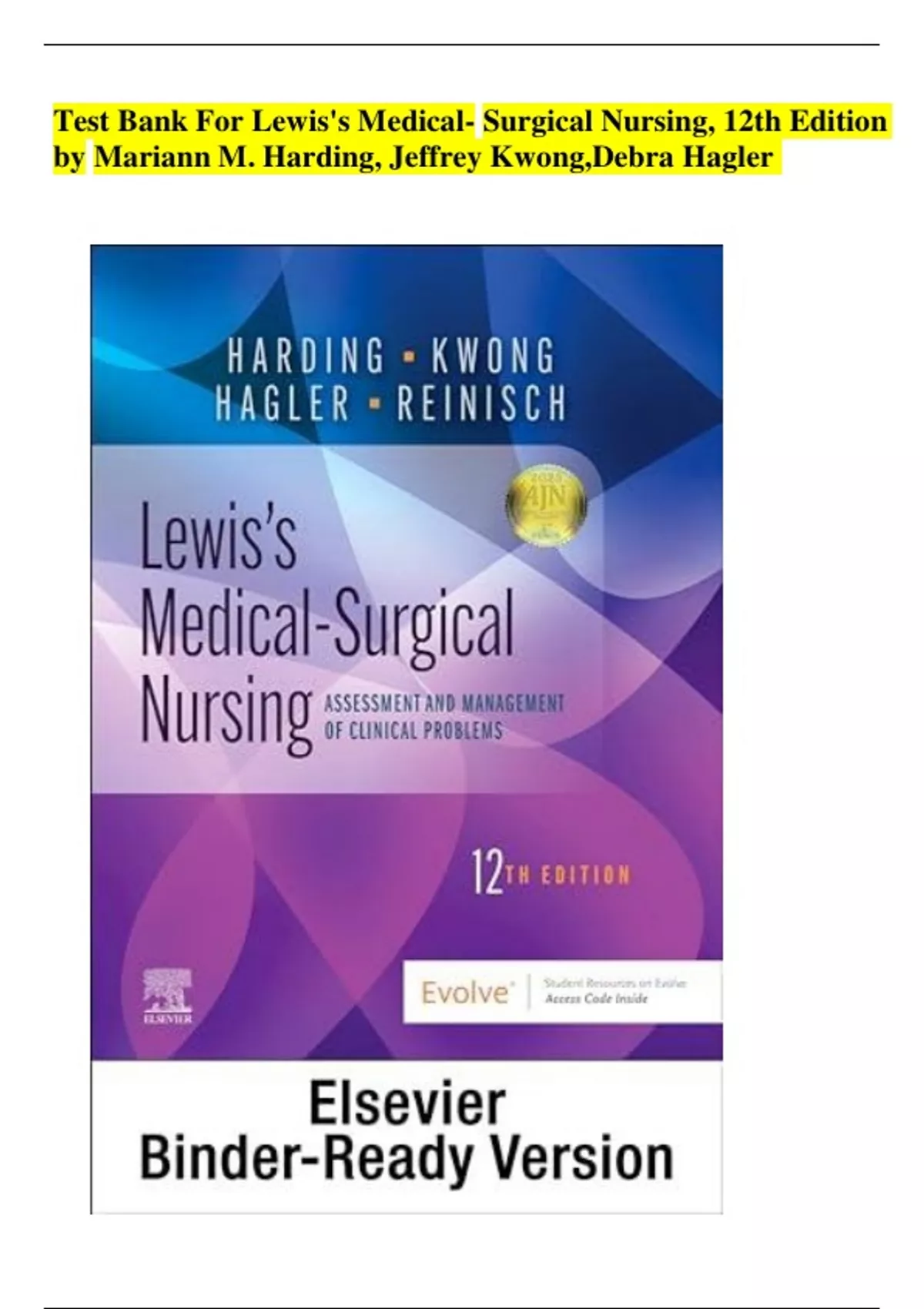 Test Bank For Lewis's Medical- Surgical Nursing, 12th Edition by Mariann M. Harding, Jeffrey Kwong,Debra Hagler