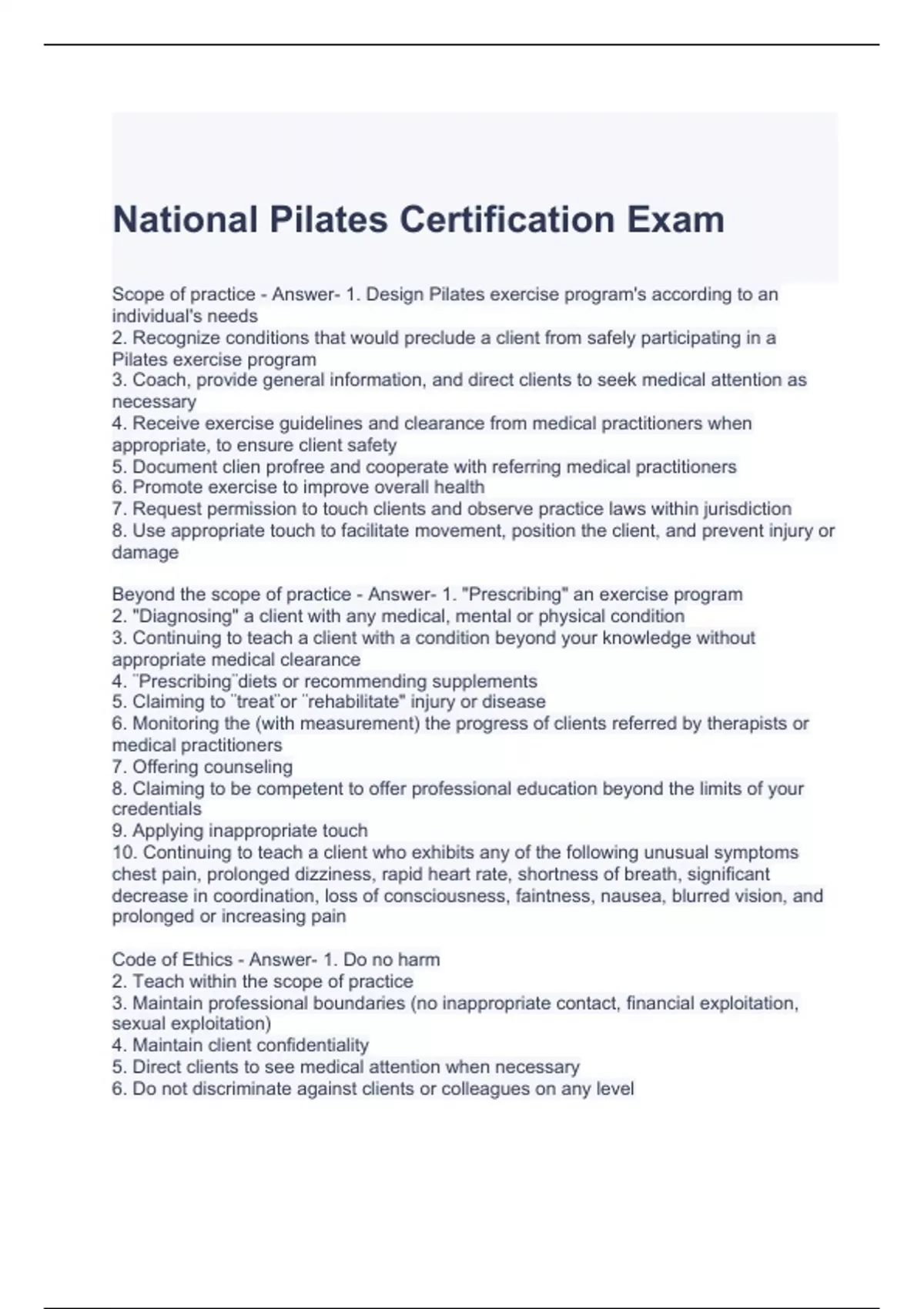 National Pilates Certification Exam with Verified Answers