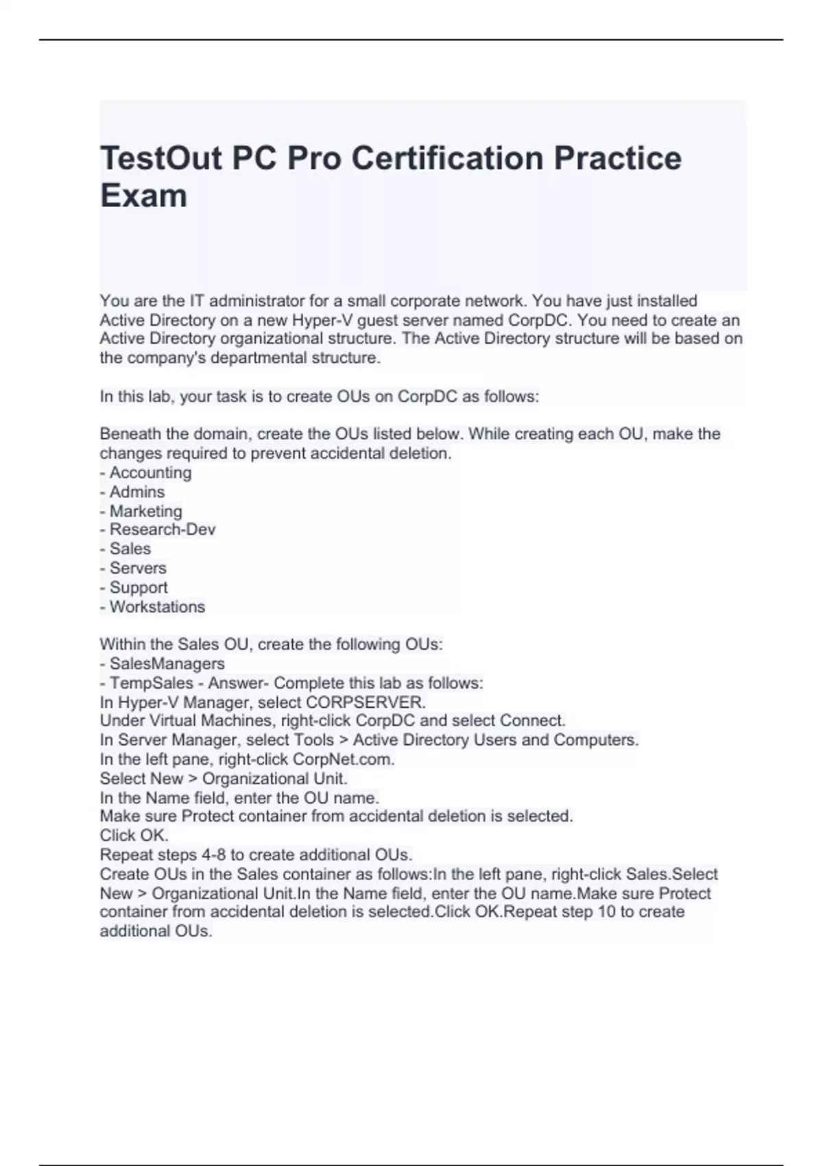 TestOut PC Pro Certification Practice Exam with Verified Answers