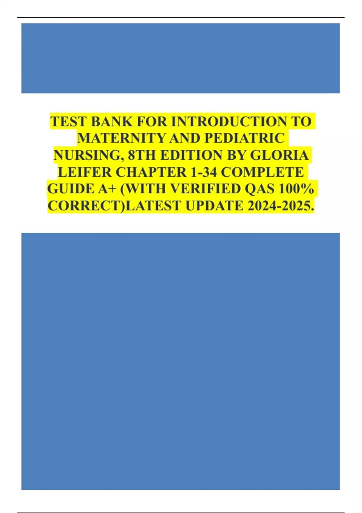 TEST BANK FOR INTRODUCTION TO MATERNITY AND PEDIATRIC NURSING, 8TH EDITION BY GLORIA LEIFER CHAPTER 1-34 COMPLETE GUIDE A+