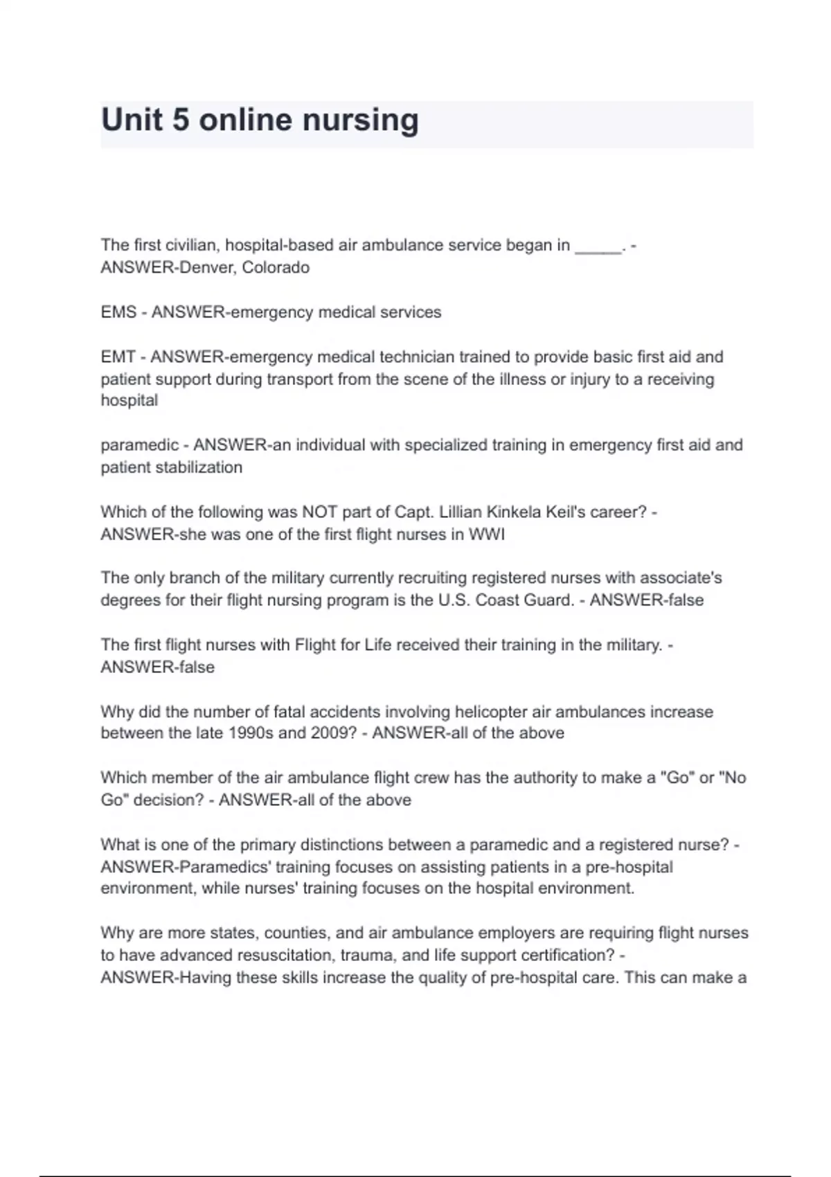 Unit 5 online nursing Questions and answers