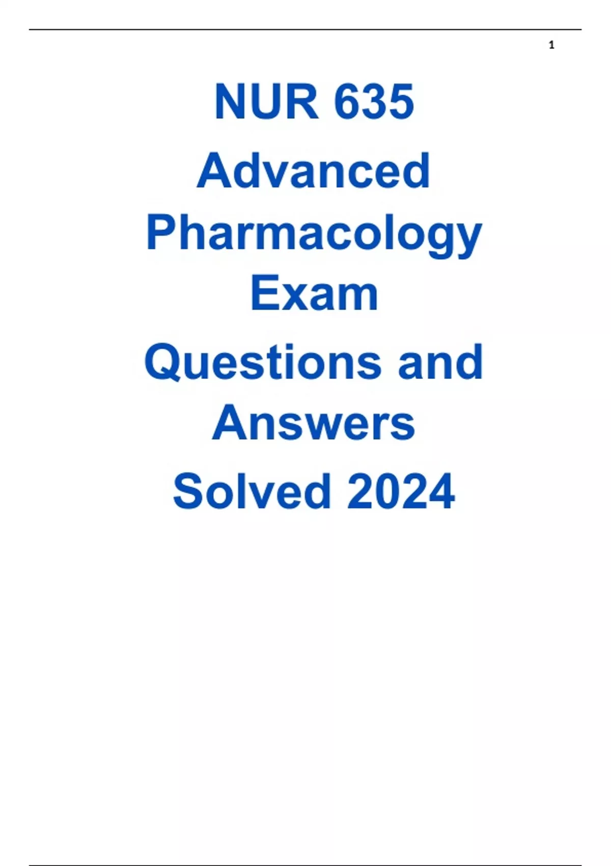 NUR 635 Advanced Pharmacology Exam Questions and Answers Solved 2024