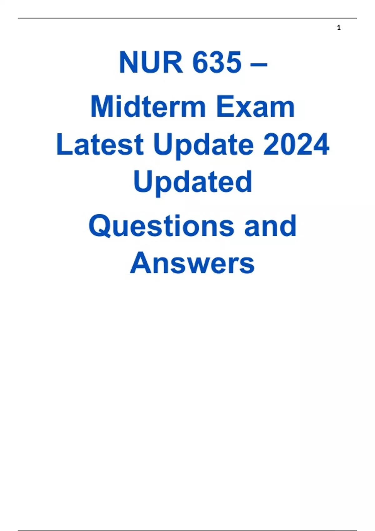 NUR 635 - Midterm Exam Latest Update 2024 Updated Questions and Answers