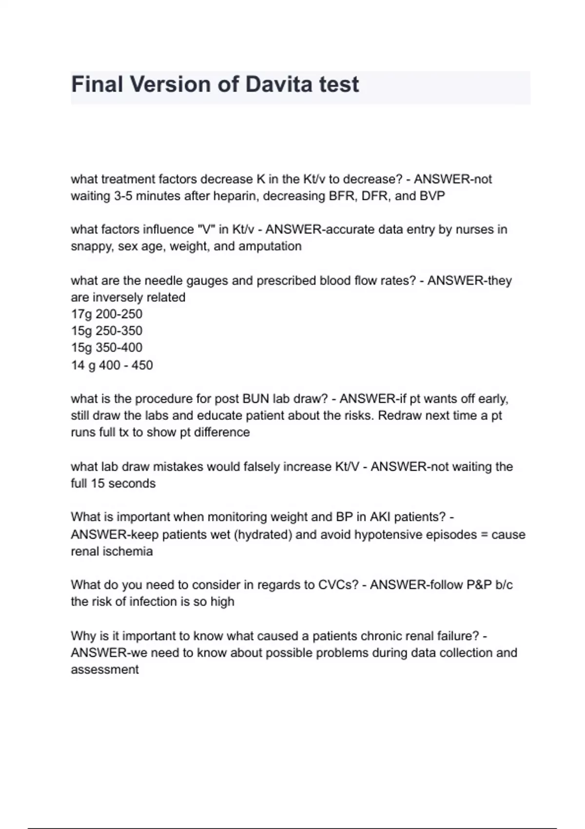 Final Version of Davita test Final Version of Davita test questions with correct answers
