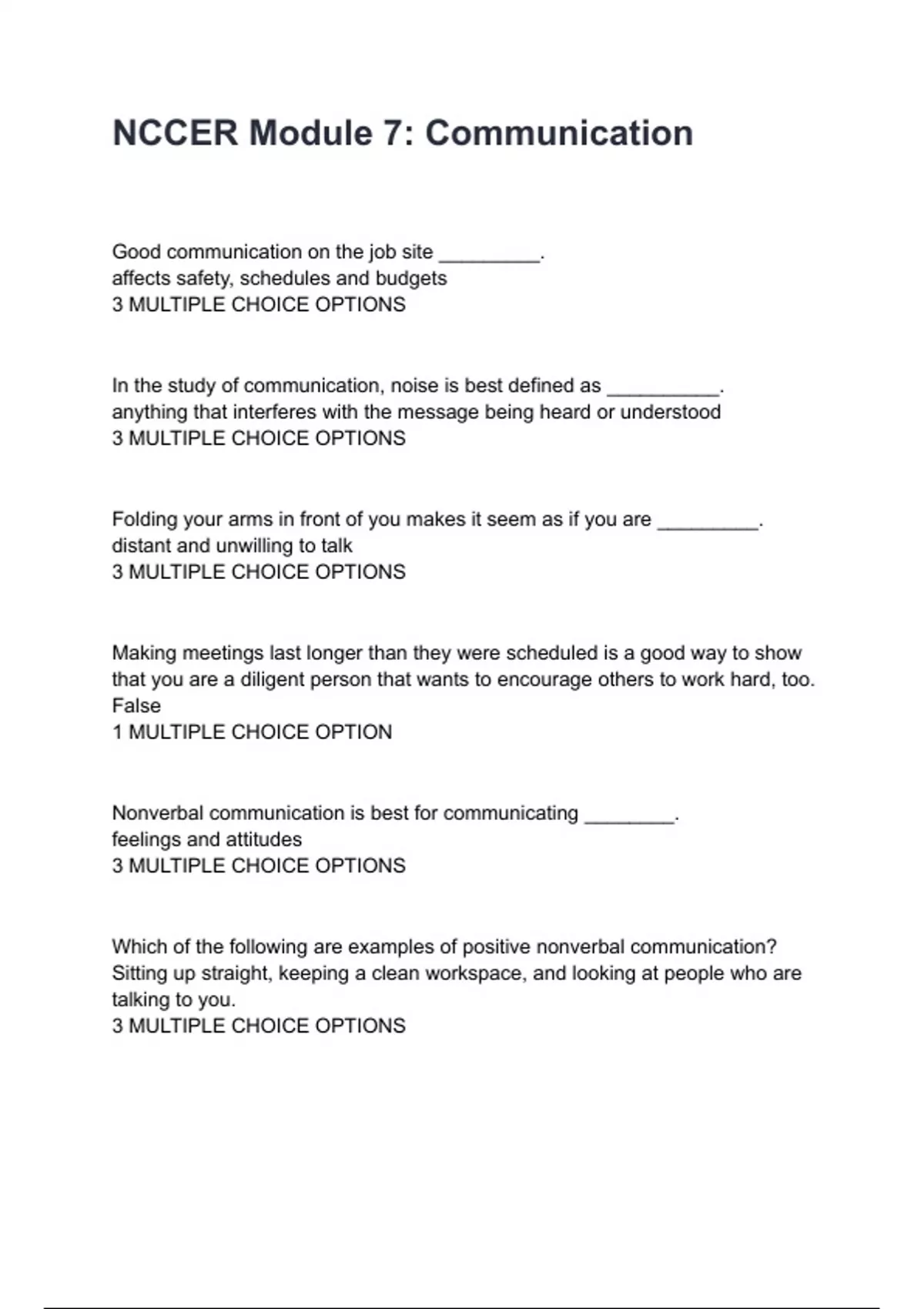 NCCER Module 7: Communication Q&A with complete solution