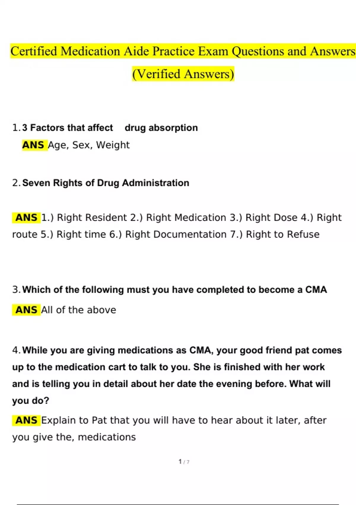 Certified Medication Aide Practice Exam Questions with Correct Answers