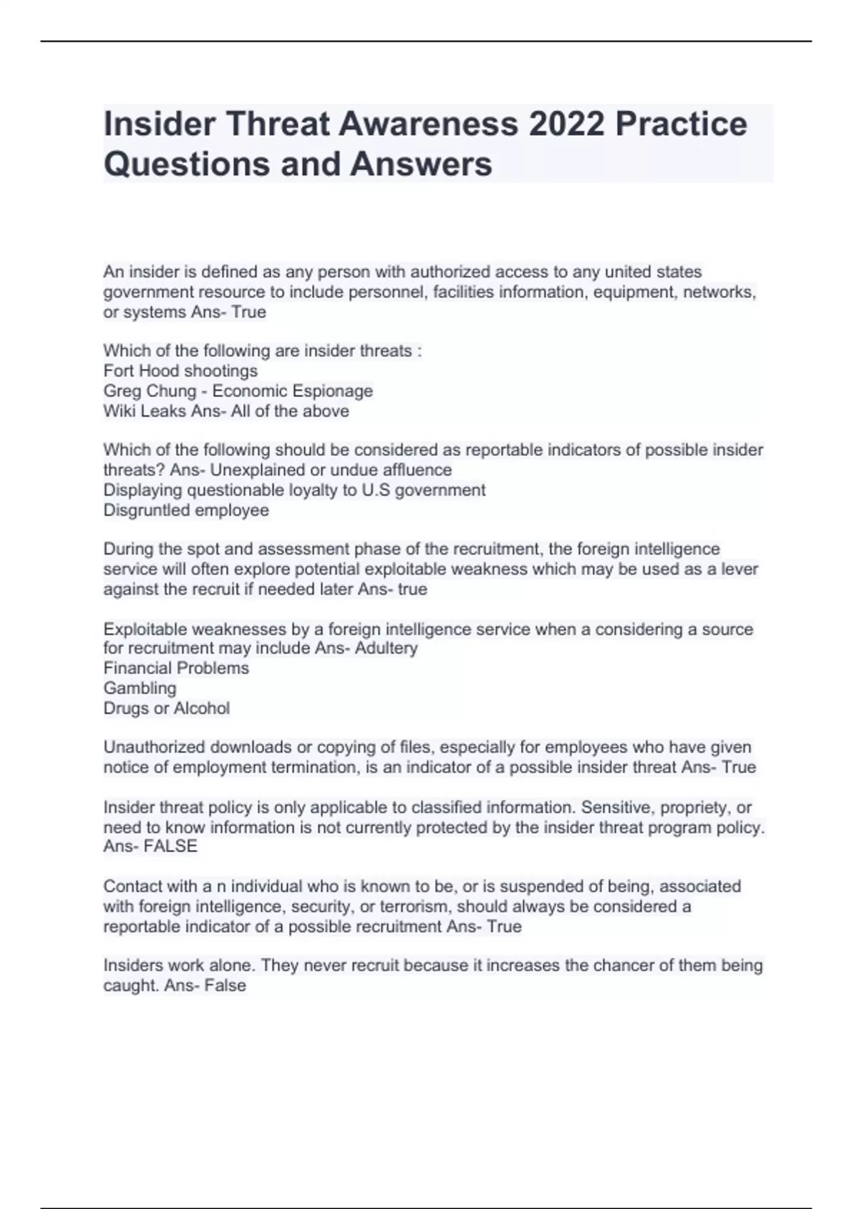 Insider Threat Awareness 2022 Practice