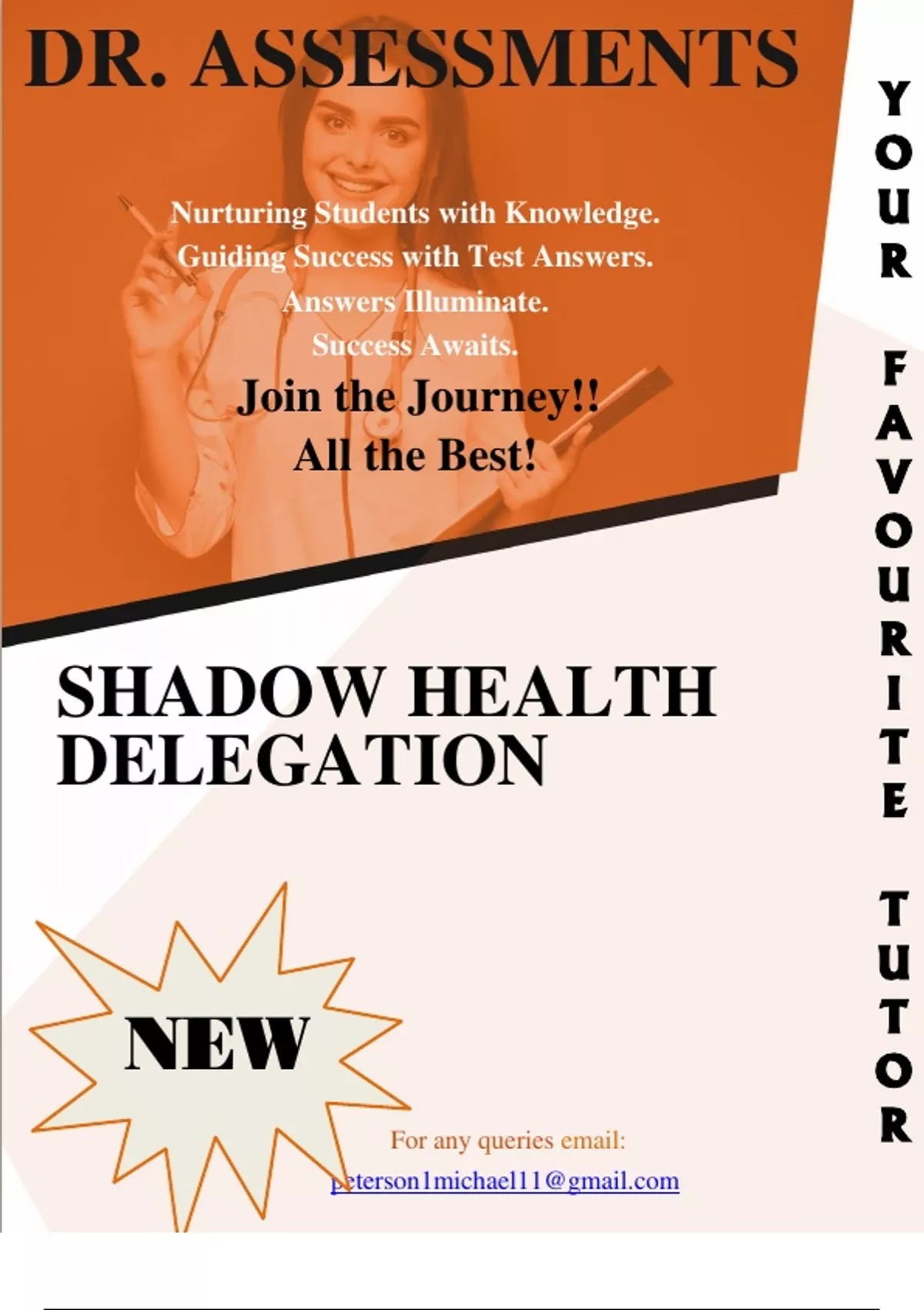 SHADOW HEALTH DELEGATION | FULLY SOLVED (PROFESSOR VERIFIED) | ALREADY GRADED A+