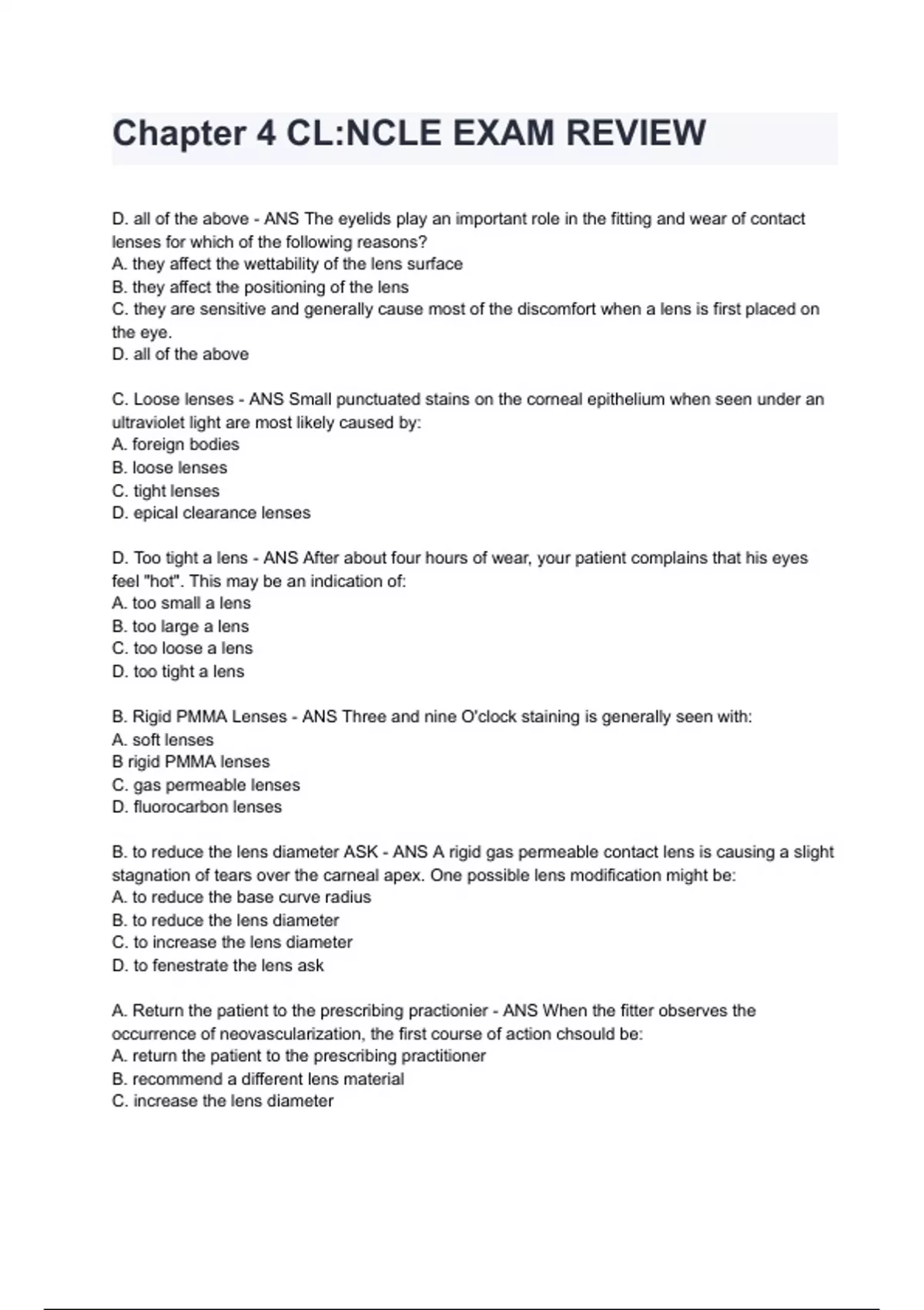 Chapter 4 CL:NCLE EXAM REVIEW 2024 Questions With Verified Solutions.