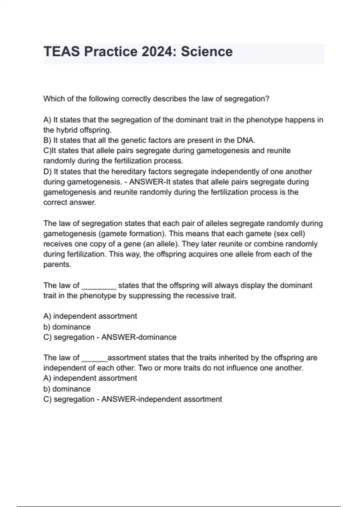 TEAS Practice 2024: Science questions with complete solution