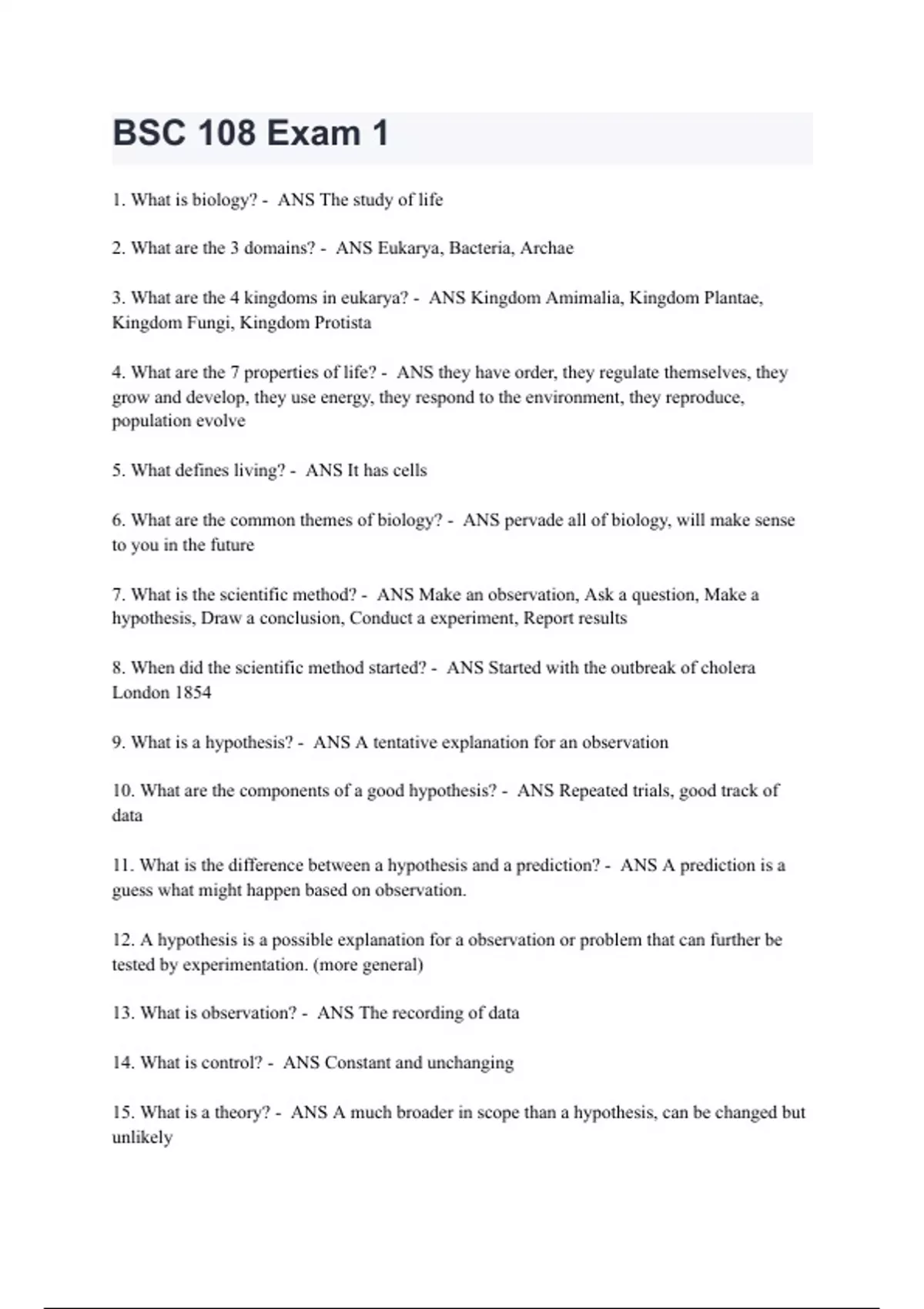 BSC 108 Exam 1 107 QUESTIONS | with 100% correct Answers | 2024 updated & verified