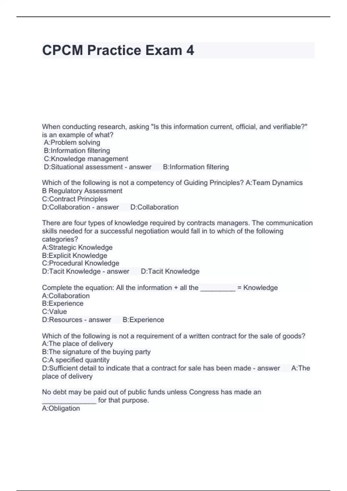 CPCM Practice Exam 4 Questions and Answers 100% Accurate
