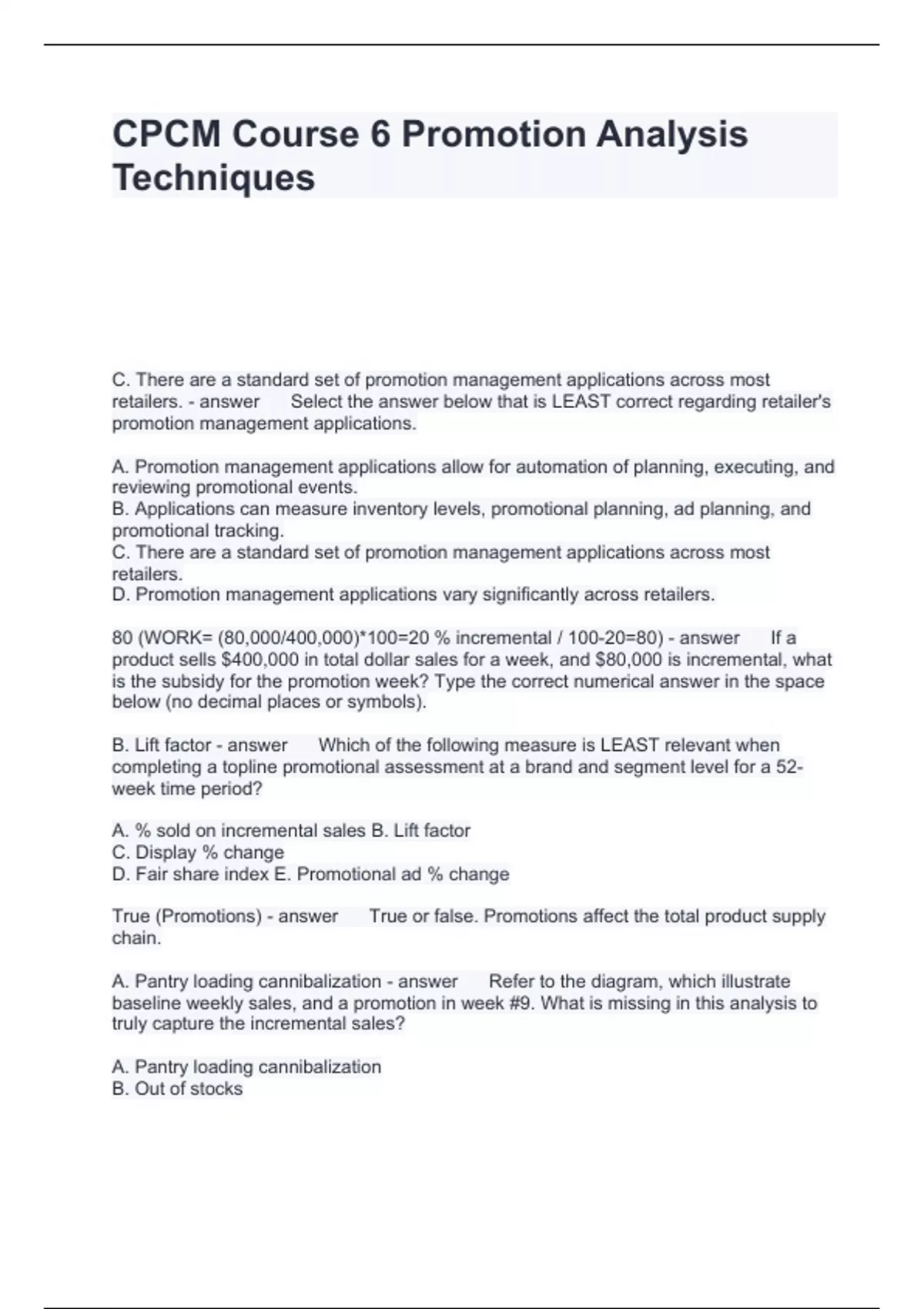 CPCM Course 6 Promotion Analysis Techniques Questions with correct Answers