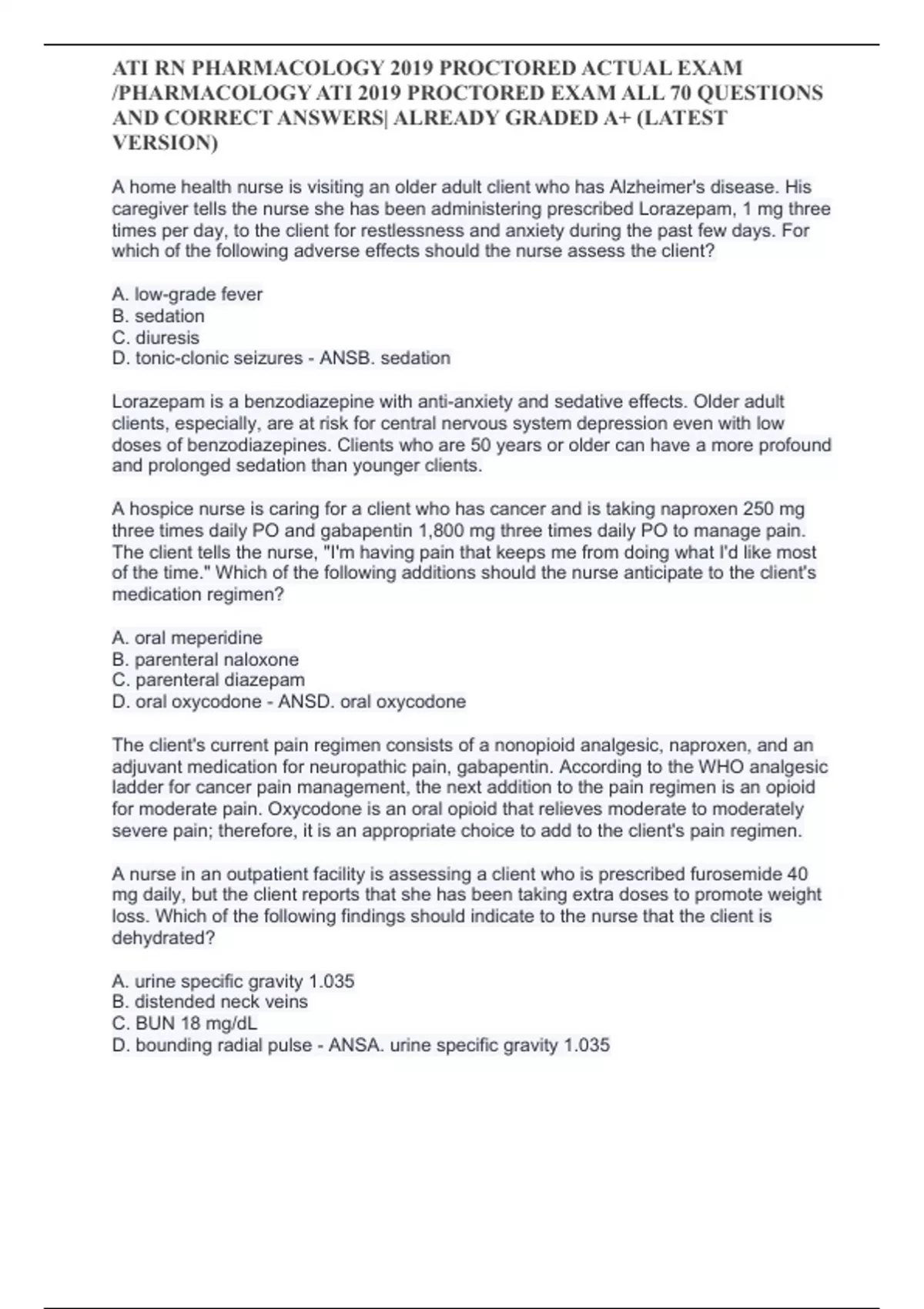 ATI RN PHARMACOLOGY 2024 PROCTORED ACTUAL EXAM PHARMACOLOGY ATI 2024 PROCTORED EXAM ALL 70 QUESTIONS AND CORRECT ANSWERS ALREADY GRADED A+ (LATEST VERSION).docx