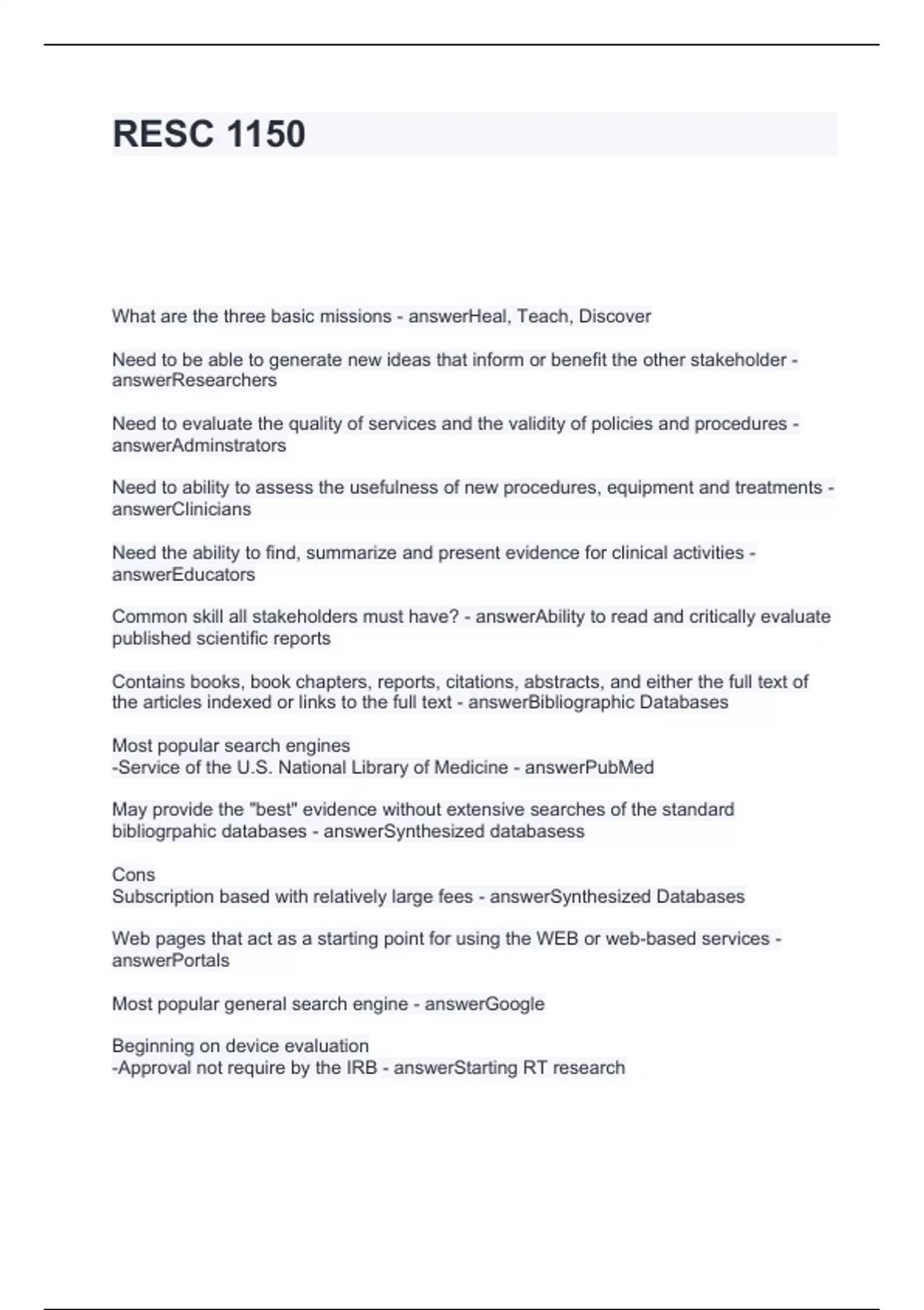 RESC 1150 QUESTIONS AND ANSWERS FULLY SOLVED