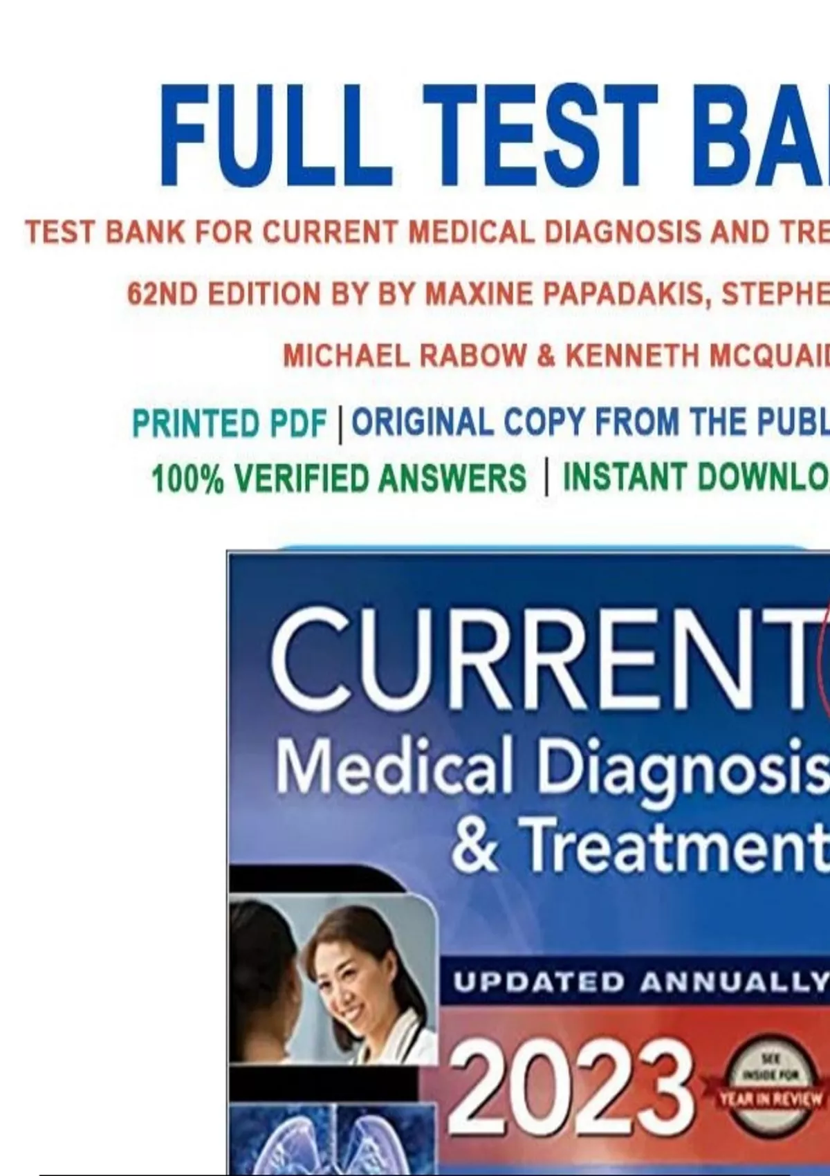 Test bank for current medical diagnosis and treatment nd edition by Maxine Papadakis.