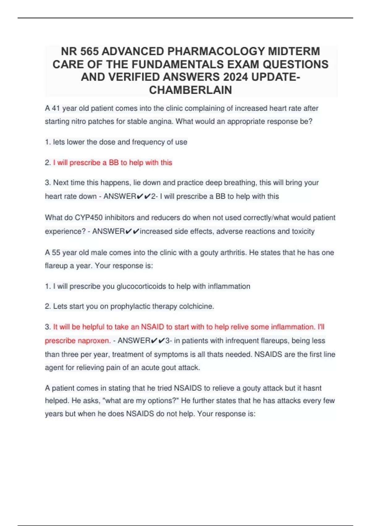 NR 565 ADVANCED PHARMACOLOGY MIDTERM CARE OF THE FUNDAMENTALS EXAM QUESTIONS AND VERIFIED ANSWERS 2024 UPDATE