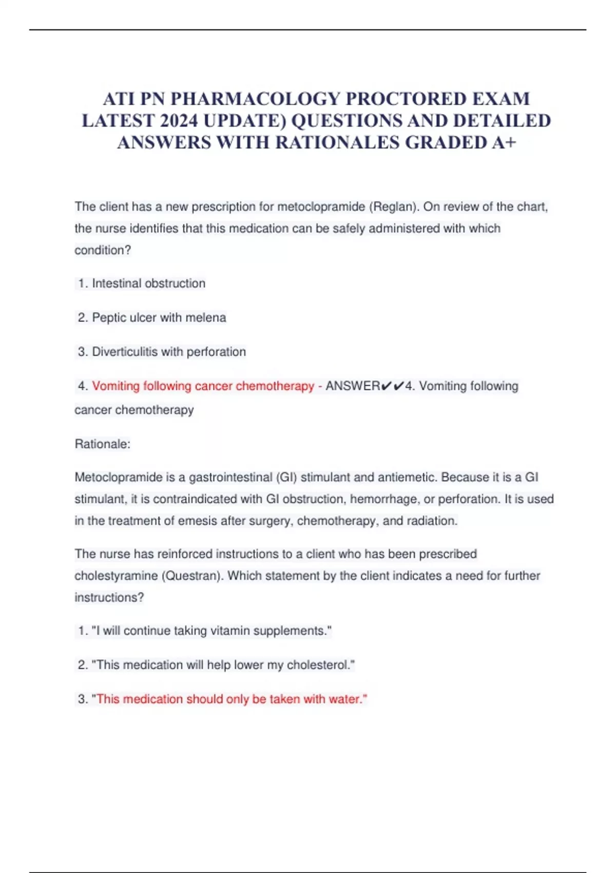 ATI PN PHARMACOLOGY PROCTORED EXAM LATEST 2024 UPDATE) QUESTIONS AND DETAILED ANSWERS WITH RATIONALES GRADED A+.