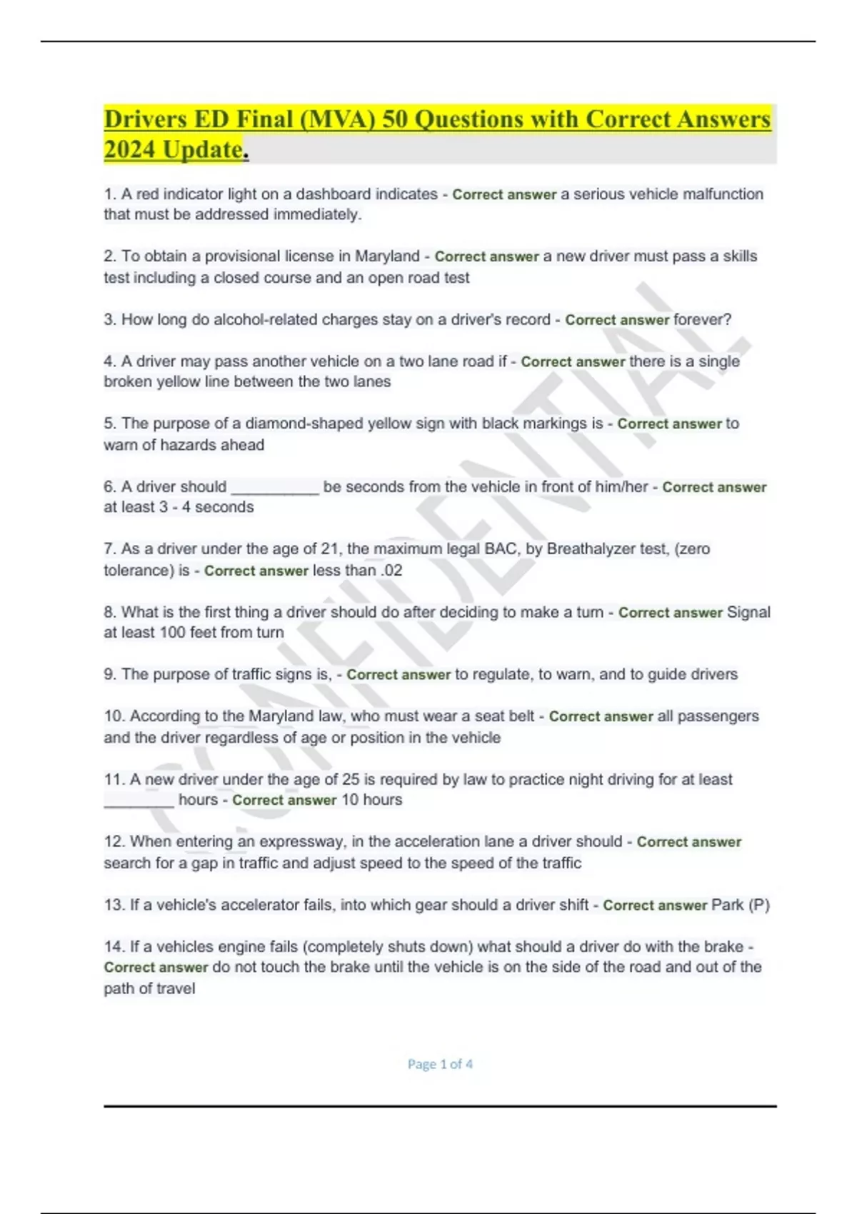 Drivers ED Final (MVA) 50 Questions with Correct Answers 2024 UpdateDrivers ED Final (MVA) 50 Questions with Correct Answers 2024 Update