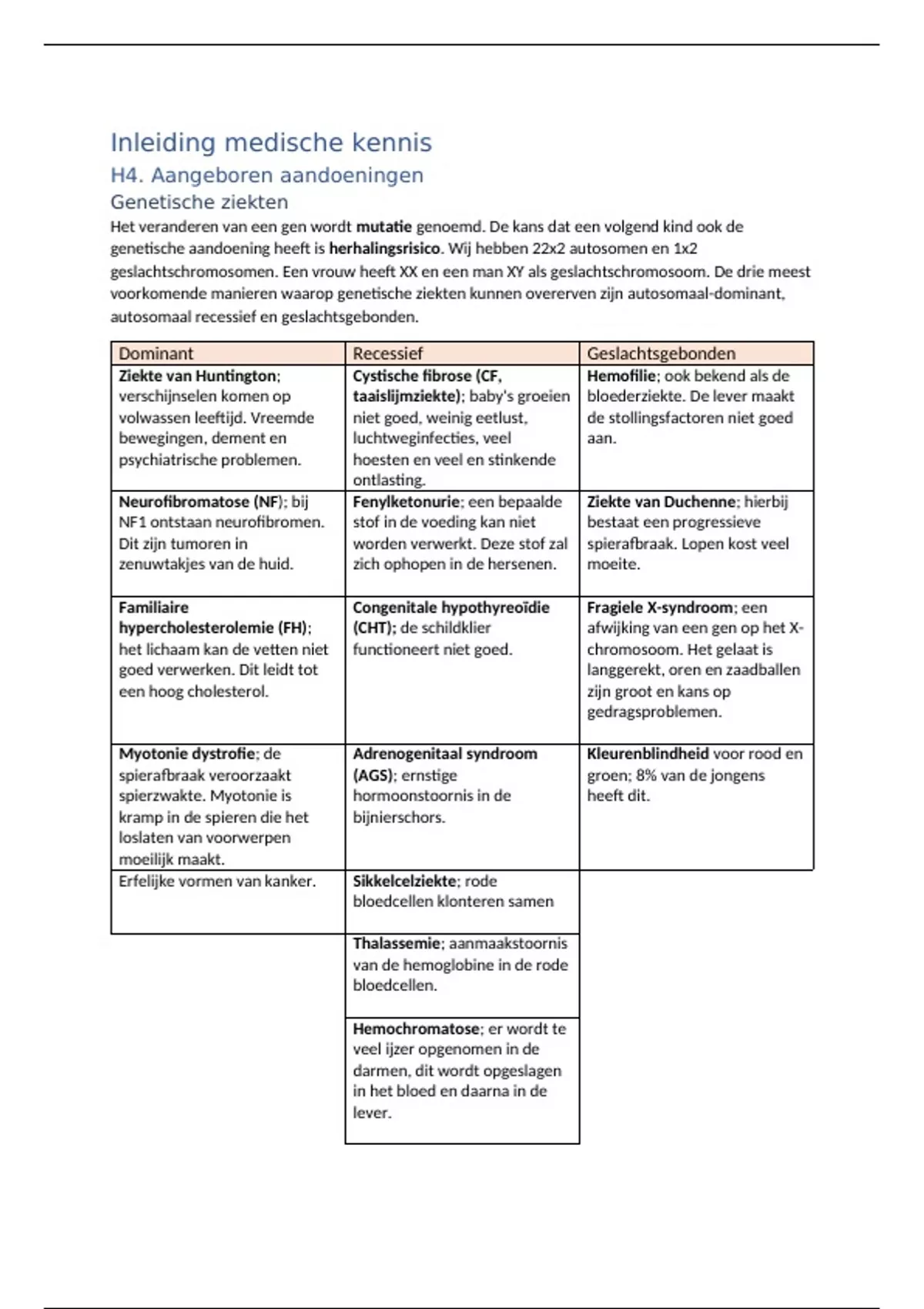 Ziekte van Huntington; Cystische fibrose (CF, Hemofilie; ook bekend als de