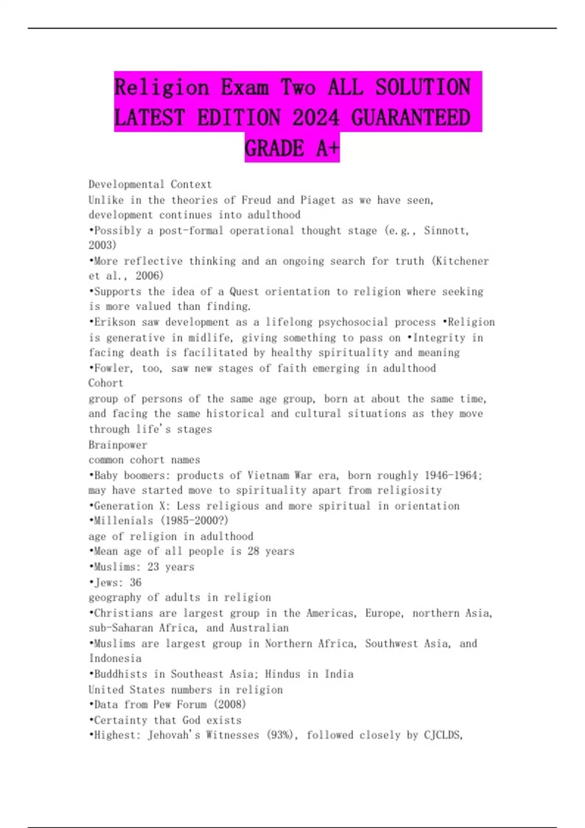 Religion Exam Two ALL SOLUTION LATEST EDITION 2024 GUARANTEED GRADE A+