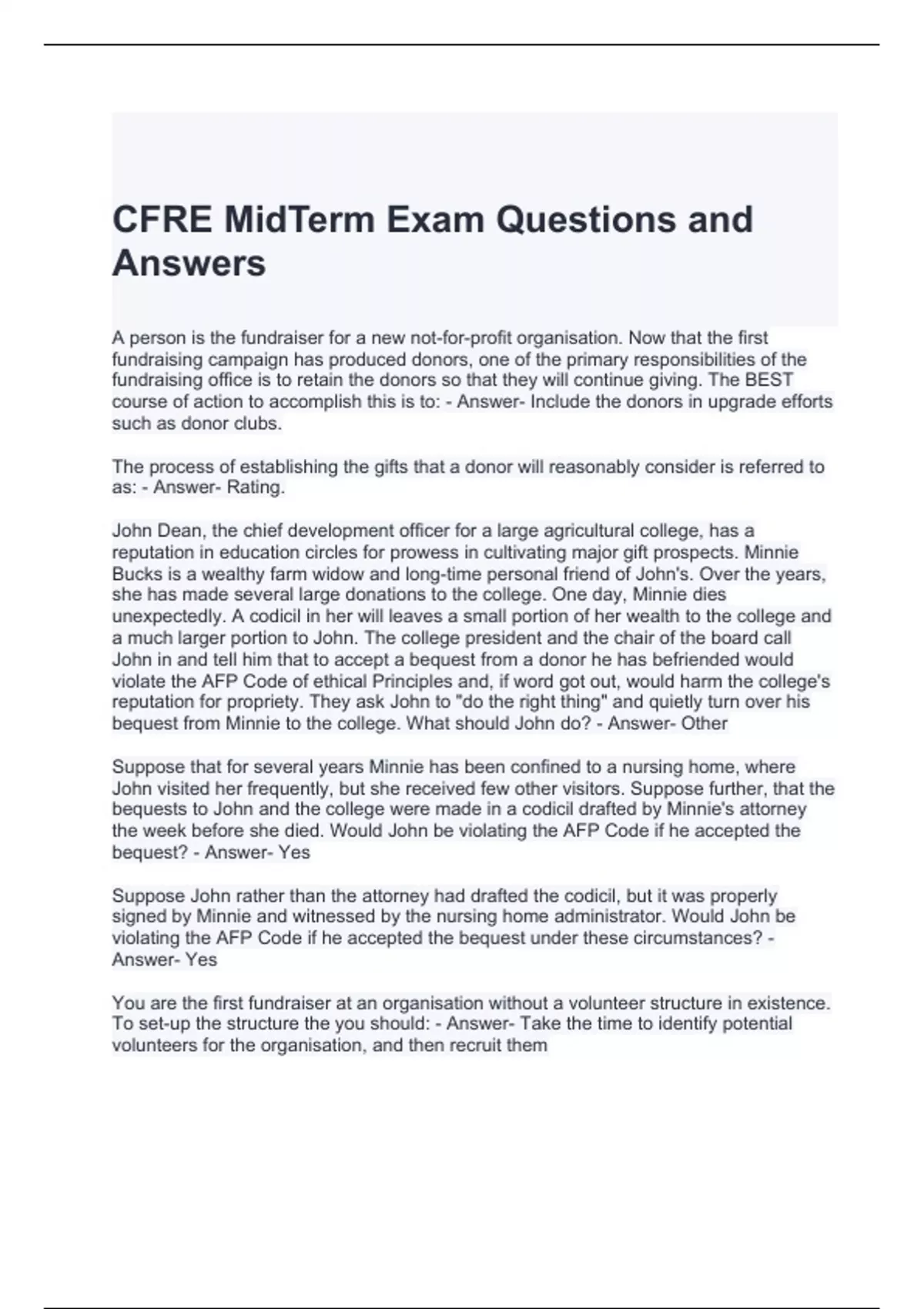 cfre midterm exam questions and answers