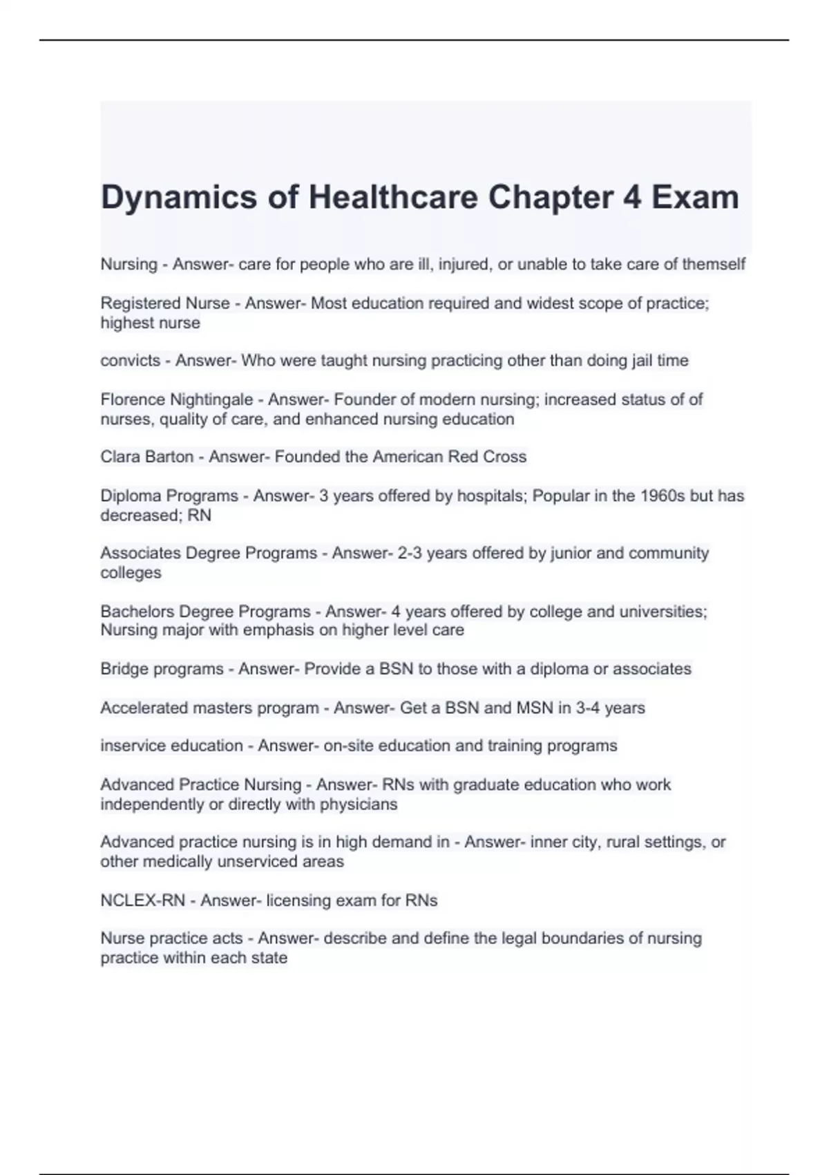 Dynamics of Healthcare Chapter 4 Exam with correct Answers