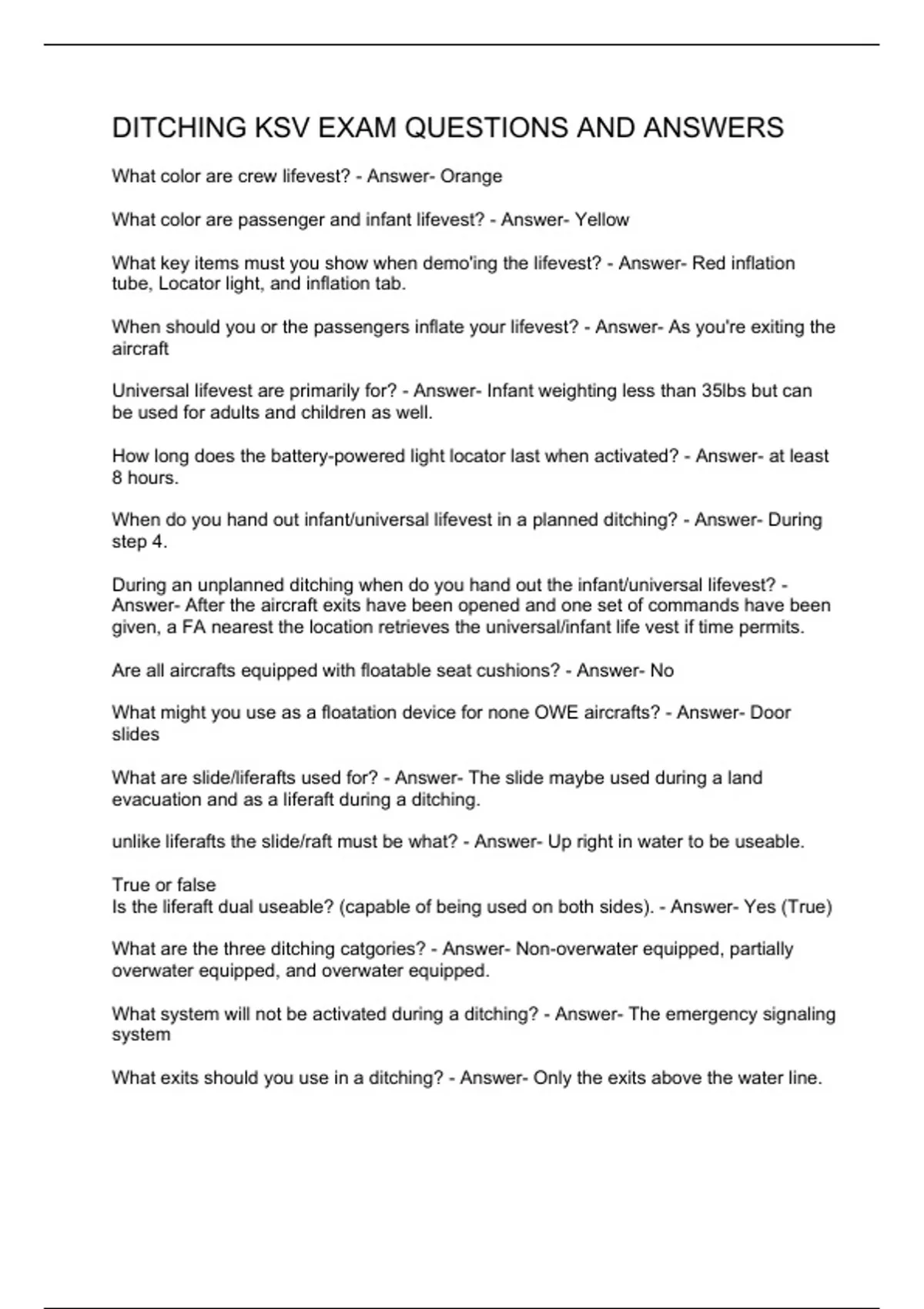 DITCHING KSV EXAM QUESTIONS AND ANSWERS