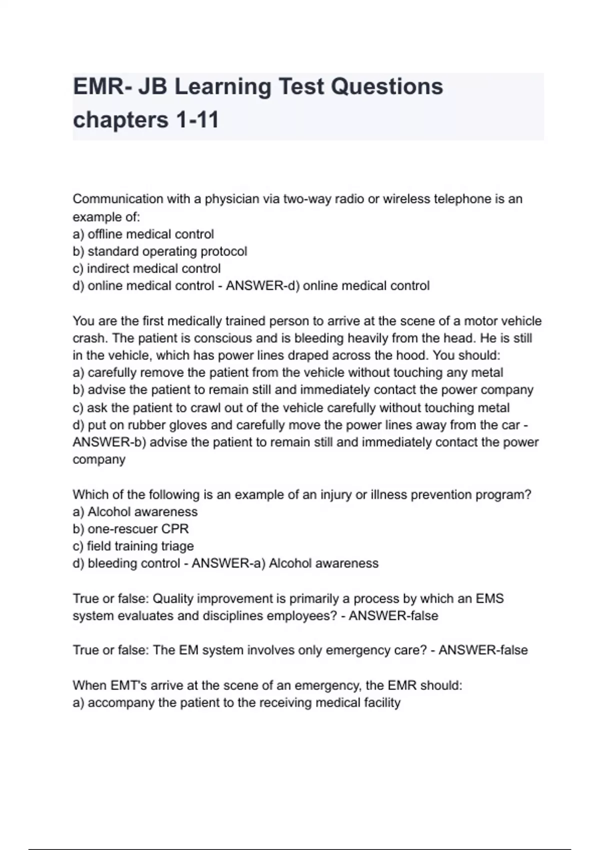 EMR- JB Learning Test Questions chapters 1-11 with answers