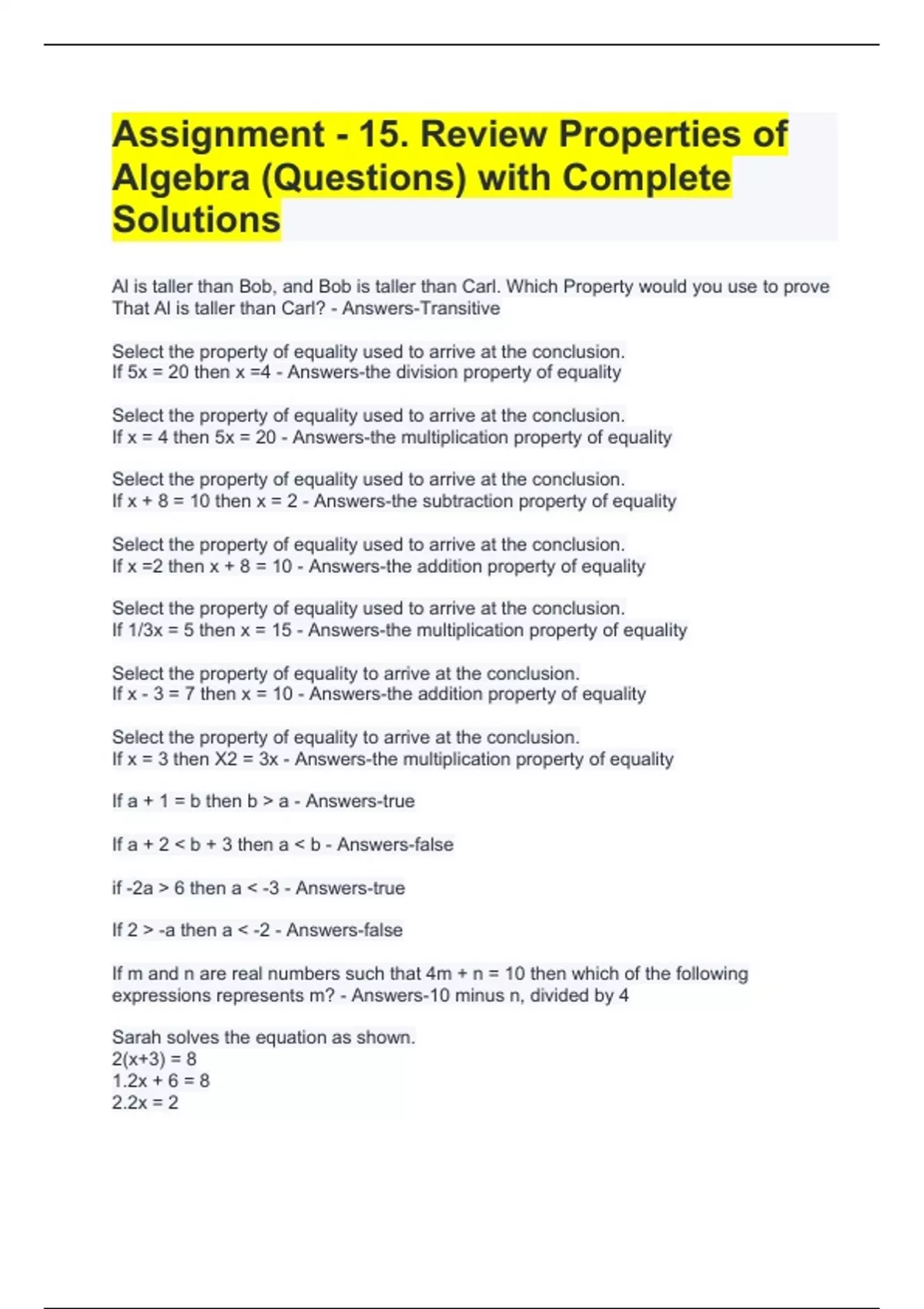 If x =2 then x + 8 = 10 - Answers-the addition property of equality