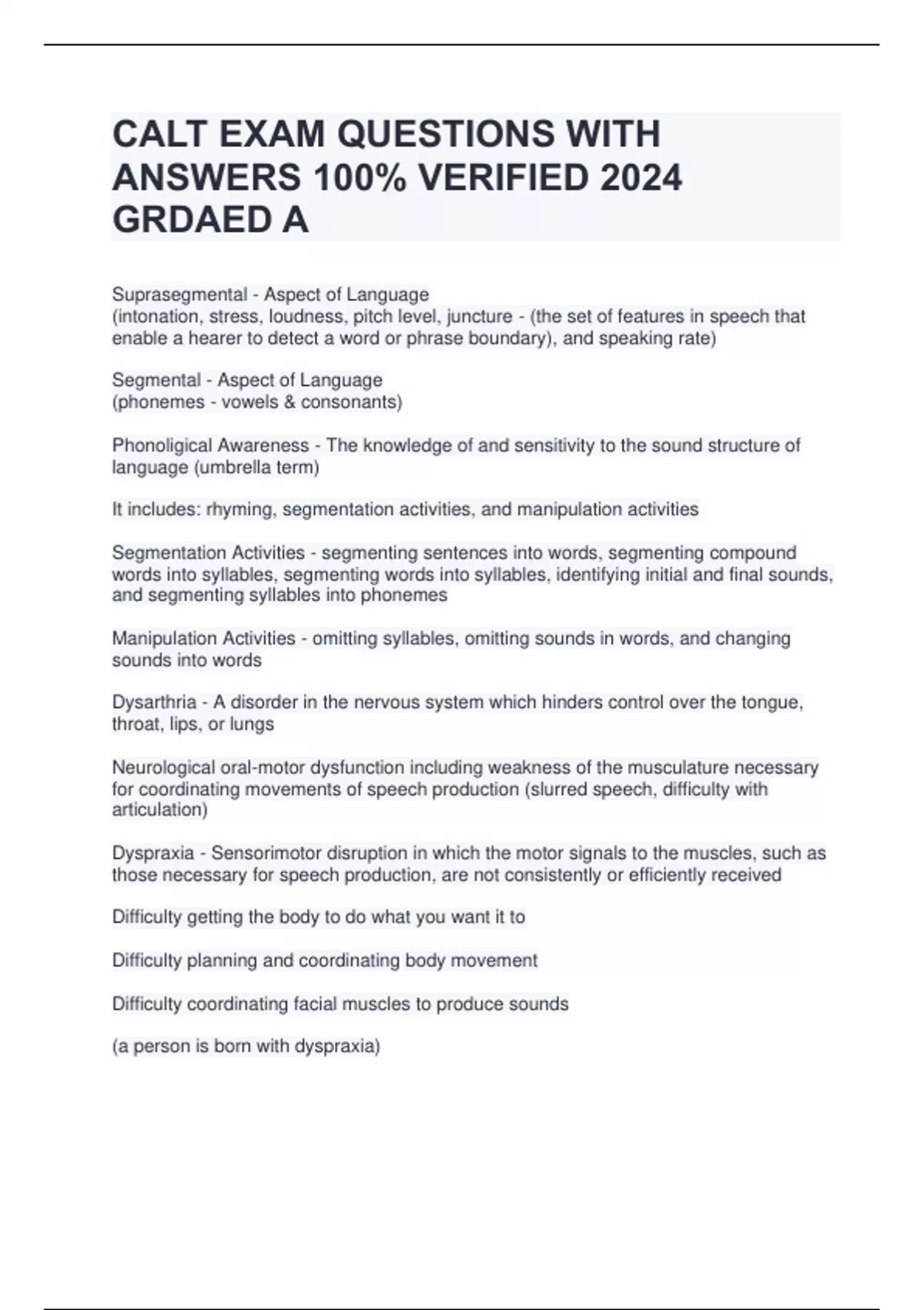 CALT EXAM QUESTIONS WITH ANSWERS 100% VERIFIED 2024 GRDAED A