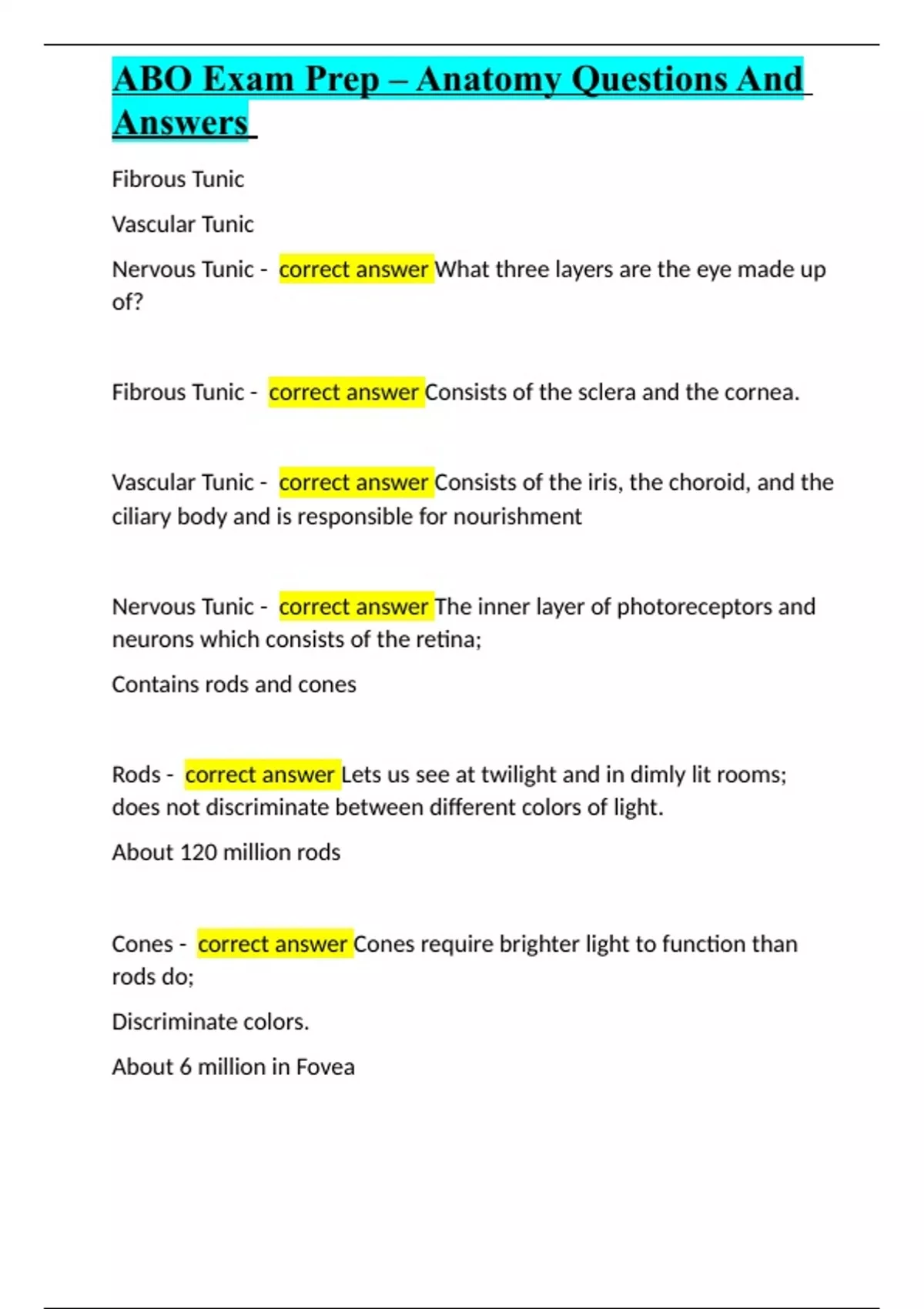 abo exam prep anatomy questions and answers
