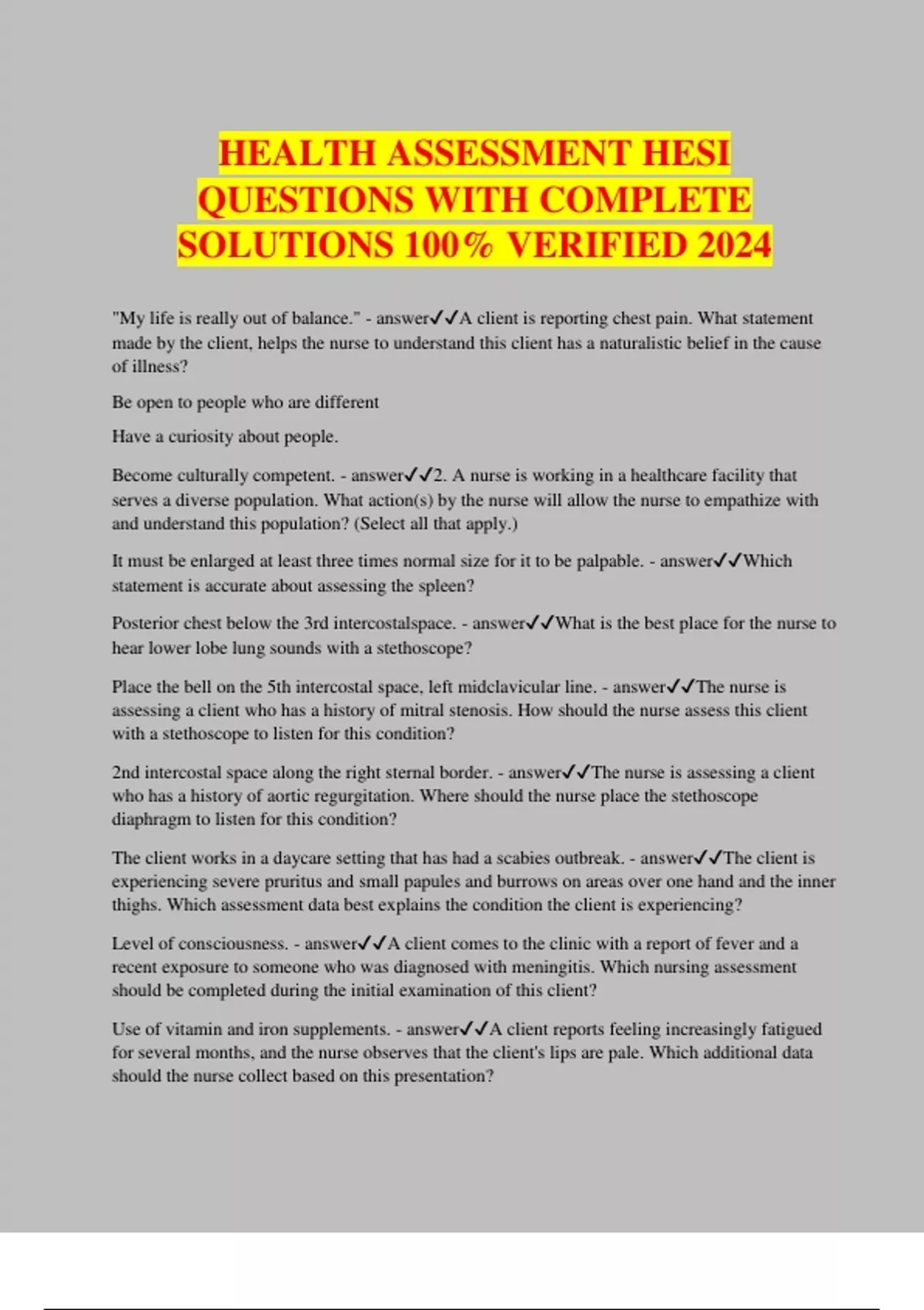 HEALTH ASSESSMENT HESI QUESTIONS WITH COMPLETE SOLUTIONS 100% VERIFIED 2024