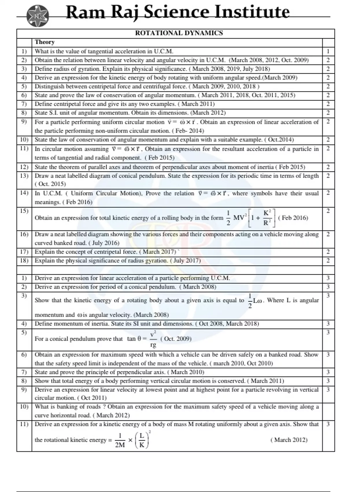 1) Derive an expression for linear acceleration of a particle performing U.C.M. 3