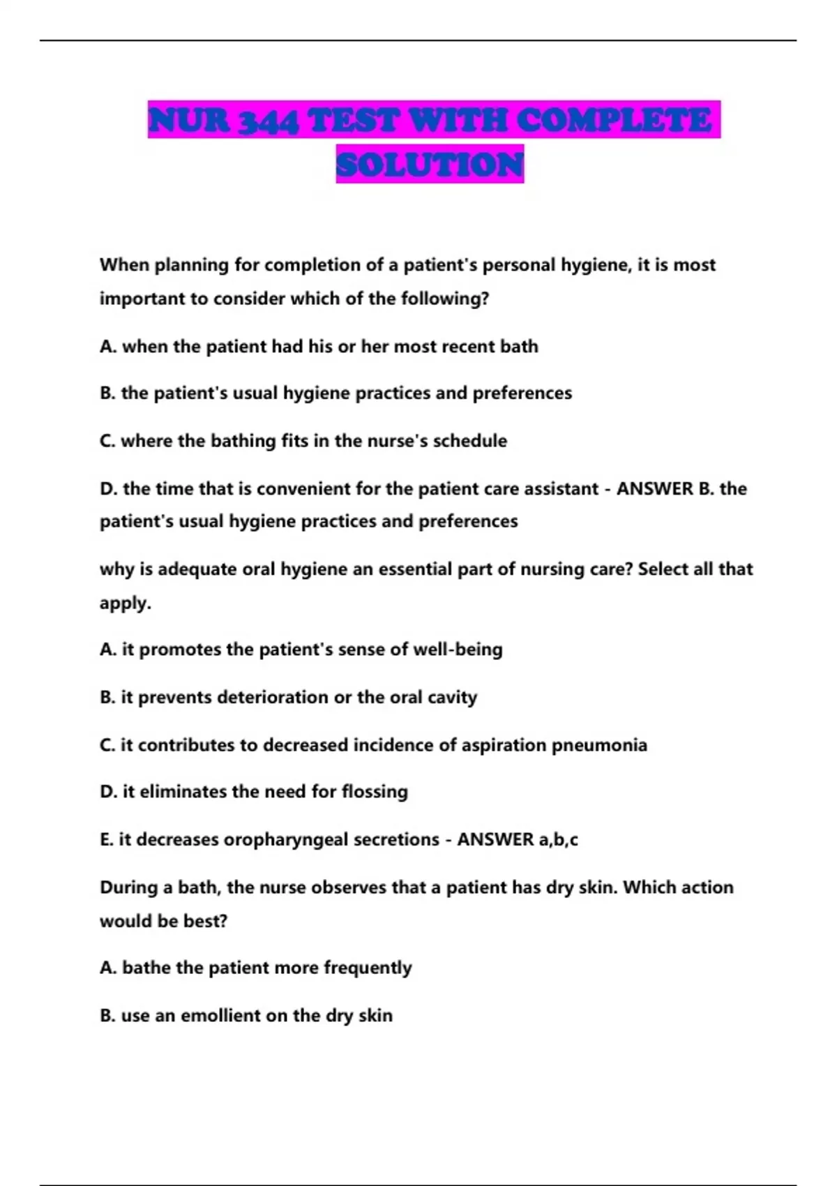 NUR 344 TEST WITH COMPLETE SOLUTION