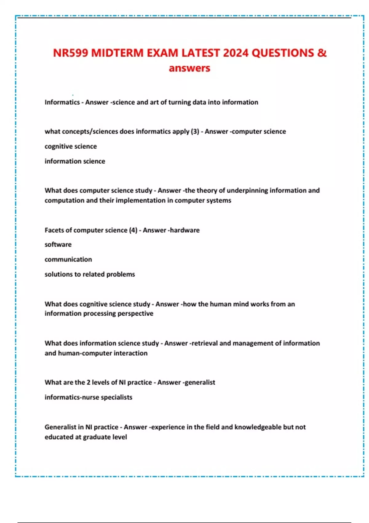 - NR599 MIDM EXATEST 2024 QUEIONS & answer