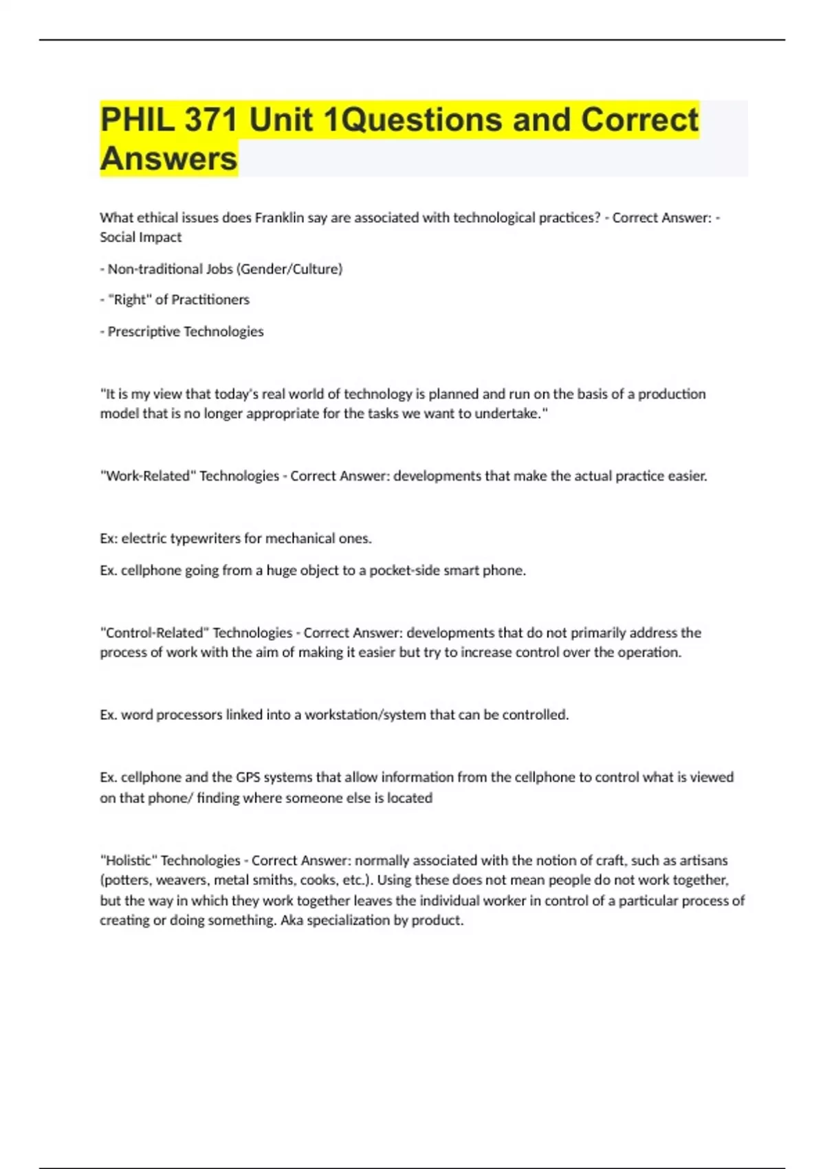PHIL 371 Unit 1Questions and Correct Answers