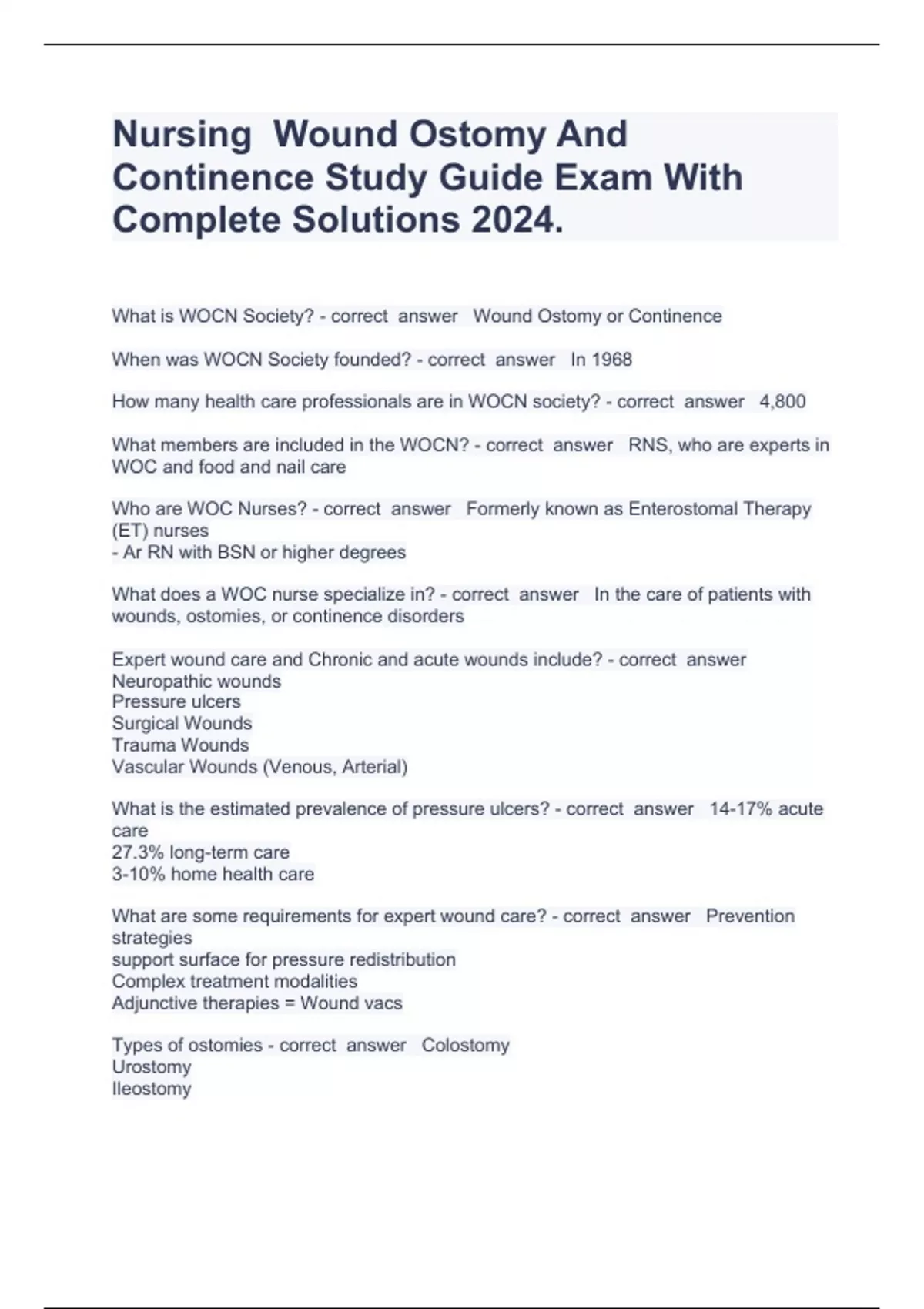 Nursing Wound Ostomy And Continence Study Guide Exam With Complete Solutions 2024.