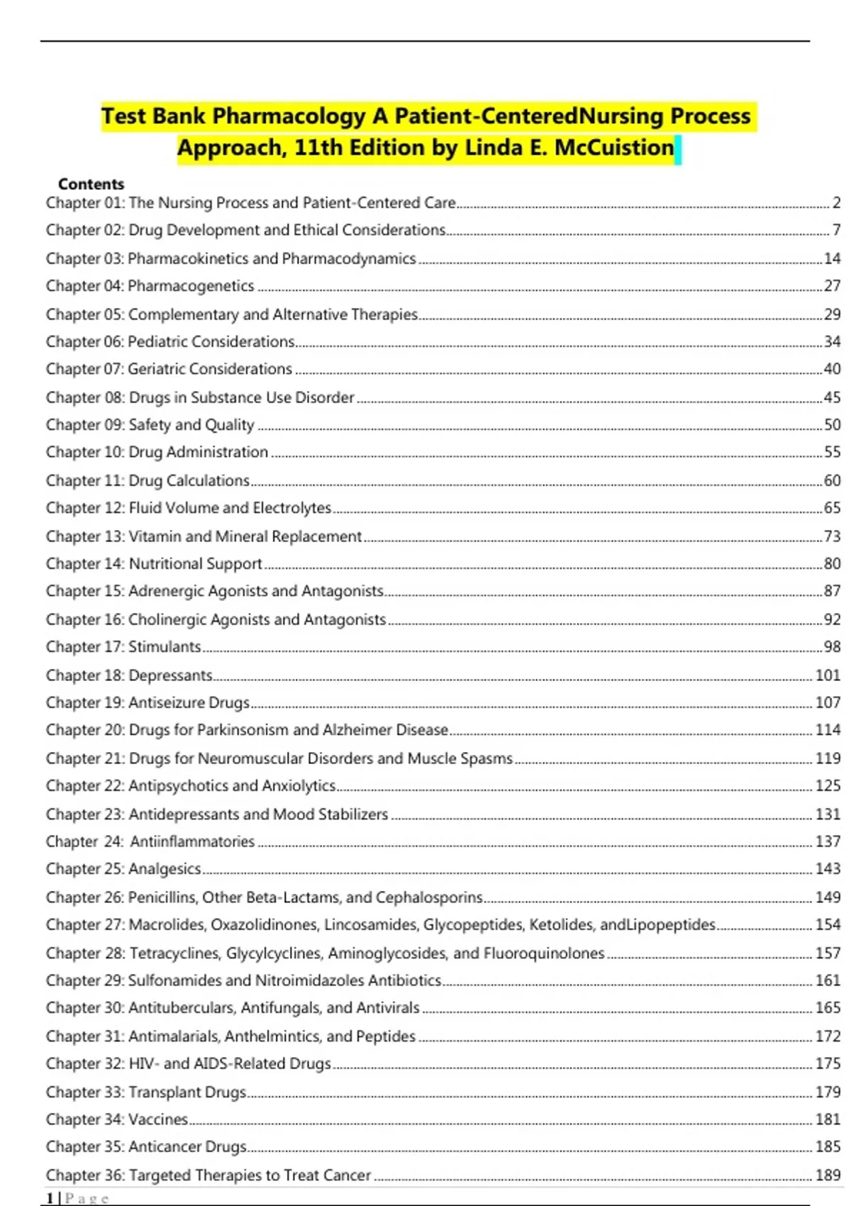 Test Bank Pharmacology A Patient-Centered Nursing Process Approach, 11th Edition by Linda E. McCuistion