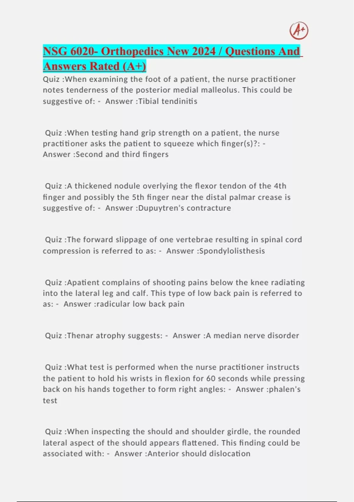 NSG 6020- Orthopedics New 2024 / Questions And Answers Rated (A+)